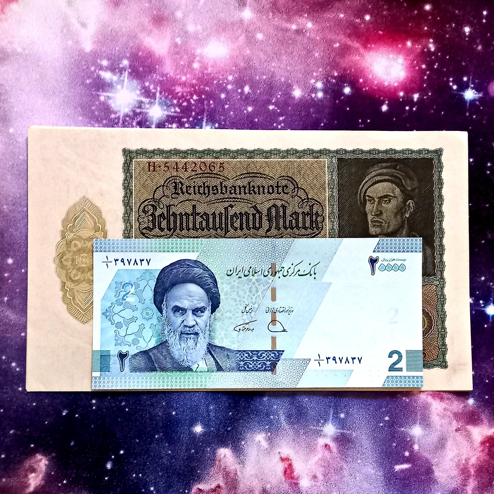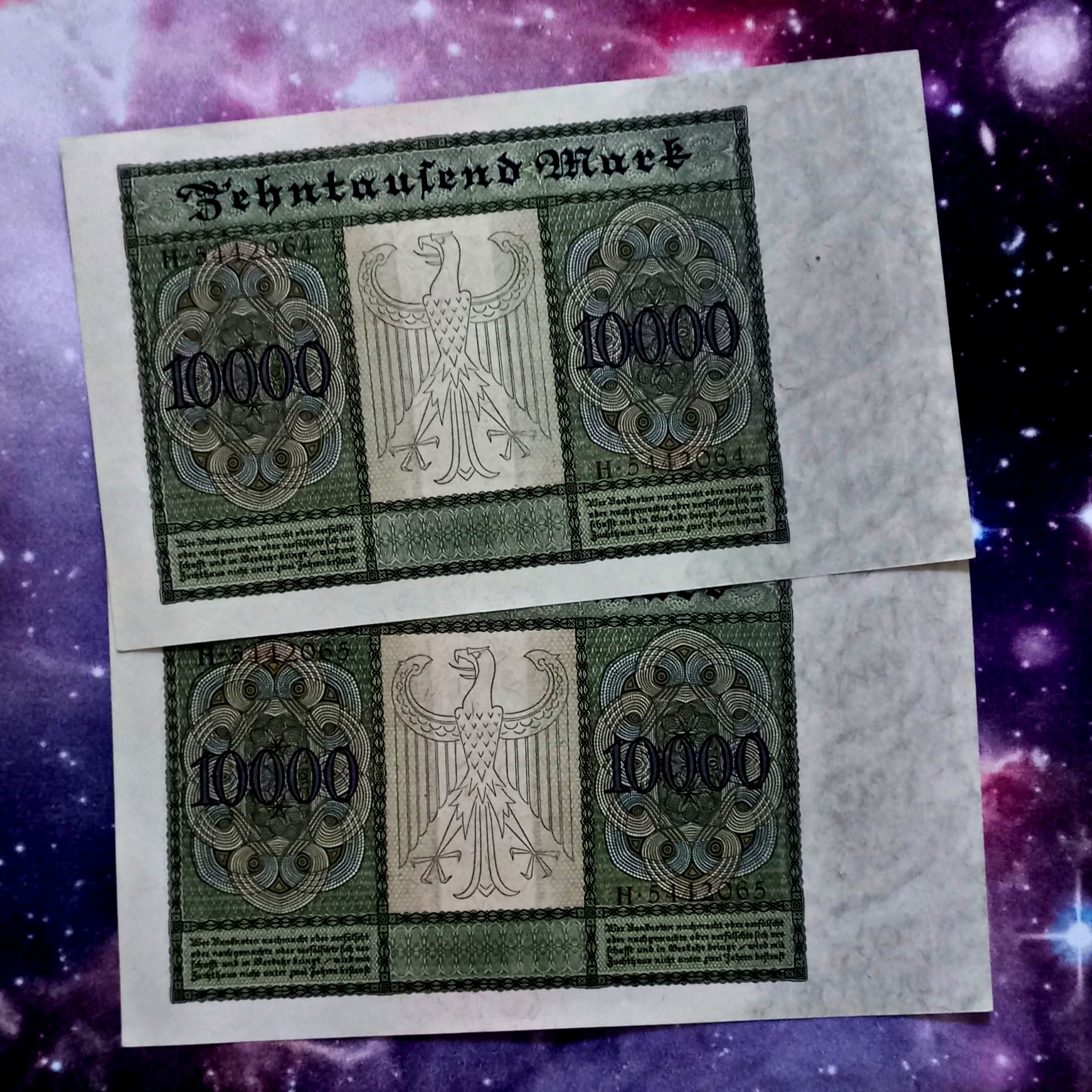 جفت اسکناس 10000 مارک 1922 آلمان معروف به خوناشام (خون آشام) سایز بسیار بزرگ عکس آخر دوهزاری جهت مقایسه بسیار کمیاب