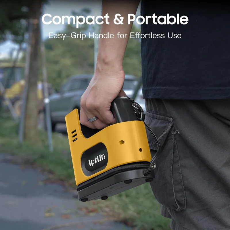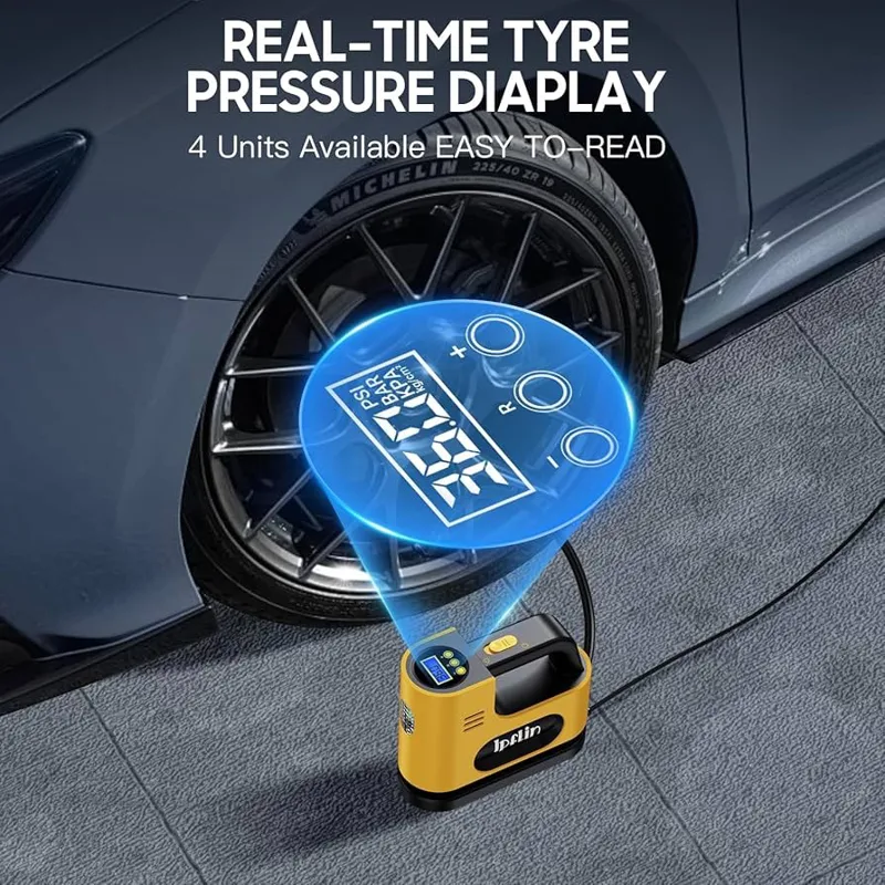 صفحه نمایش دیجیتال، نمایش فشار لحظهای: صفحه نمایش دیجیتال بزرگ، فشار باد لاستیک را در لحظه نمایش میدهد تا تجربهای دقیقتر و شهودیتر را ارائه دهد. از خطاهای خواندن فشار که در پمپهای باد معمولی رایج است، جلوگیری میکند.