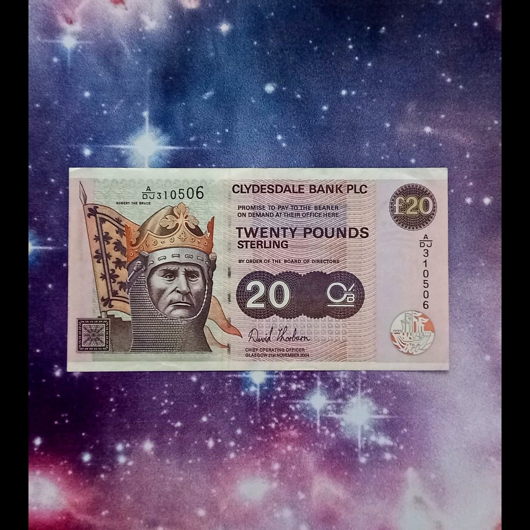 اسکناس 20 پوند 2004 اسکاتلند سری شوالیه کمیاب و ارزشمند با ارزش ارزی بالا حدود 3 ملیون تومن ارزش ارزی