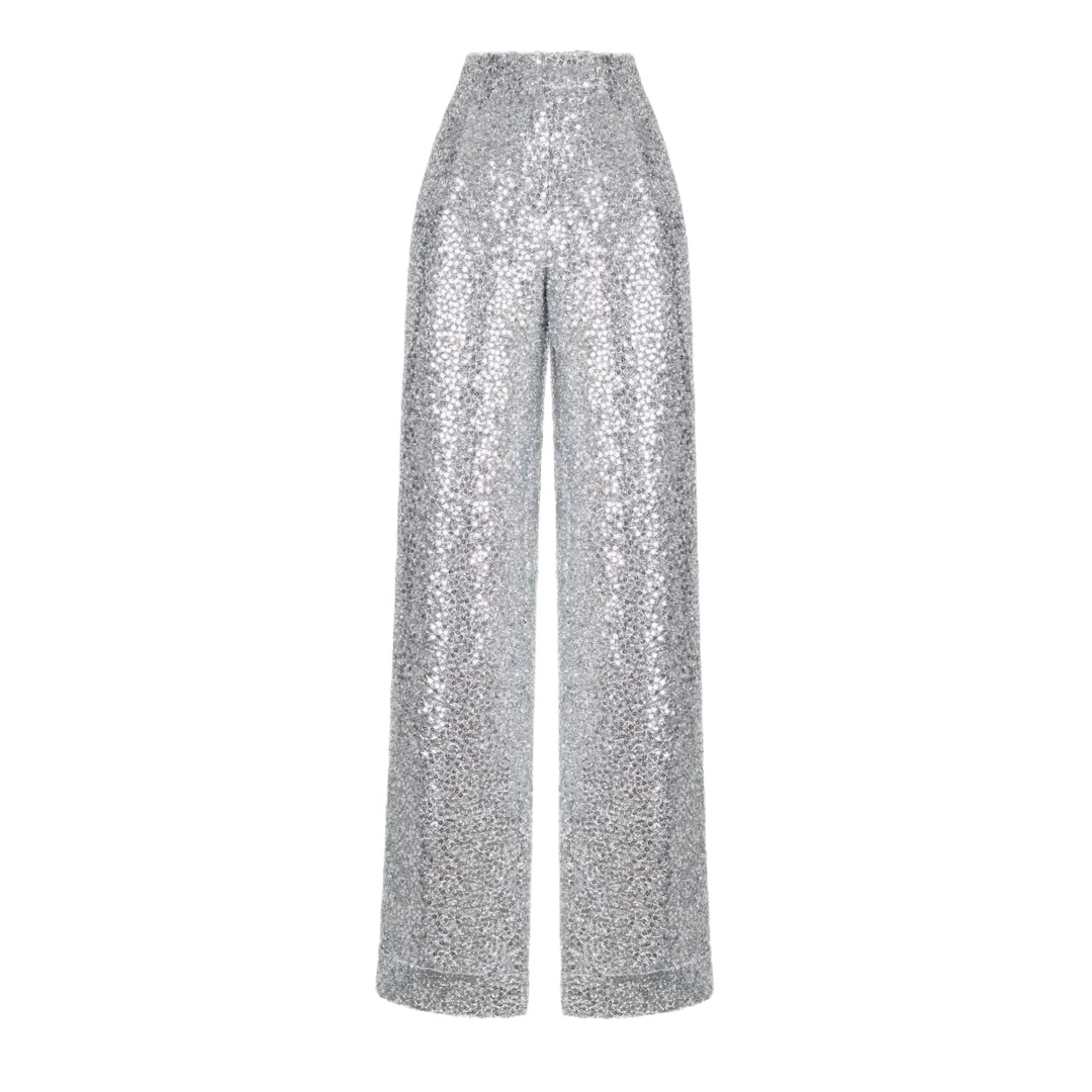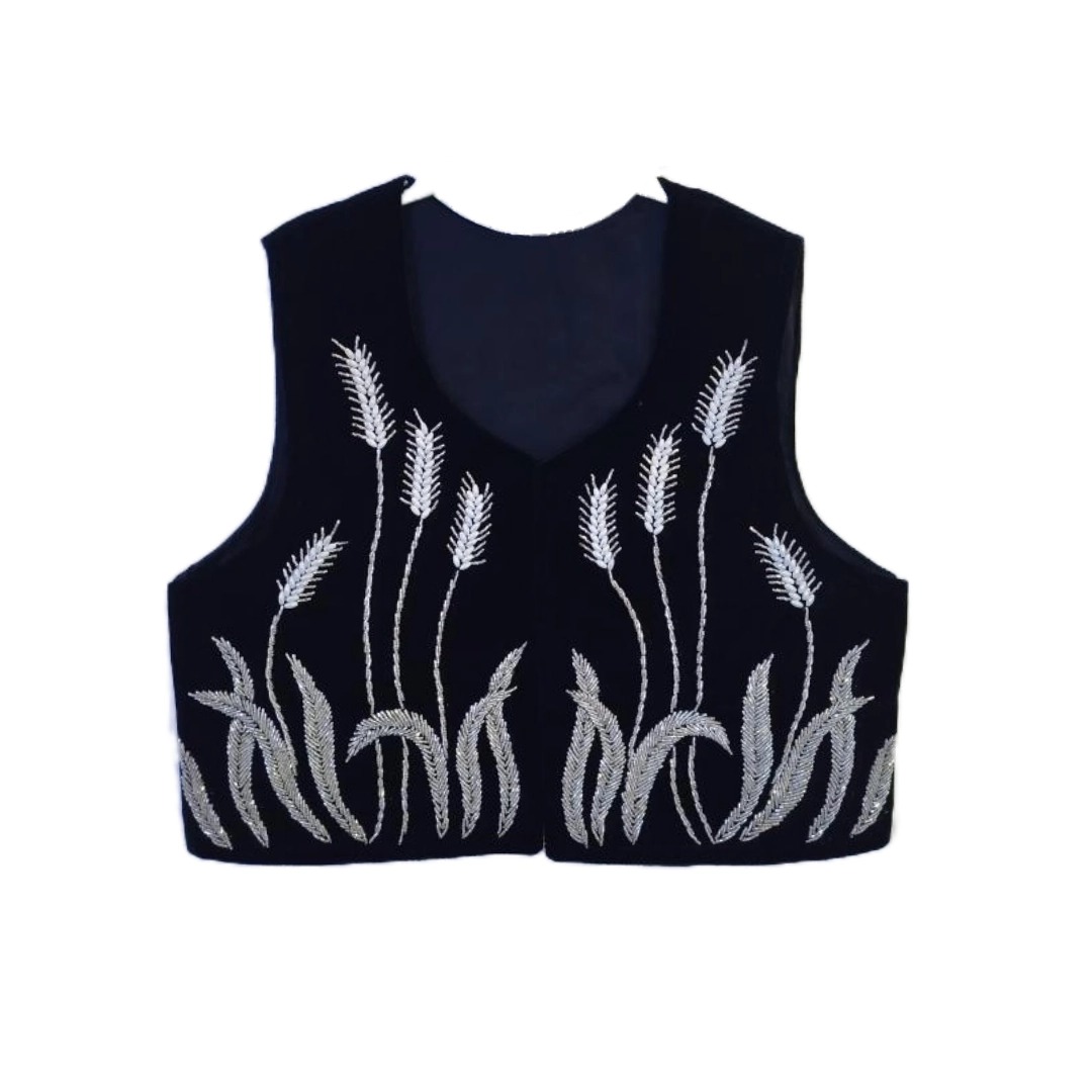 جلیقه مخمل مشکی خوشه گندم با آسترکشی کامل و تلفیق سنگ و نخ به همراه شلوار سیلور پولکی واید لگ