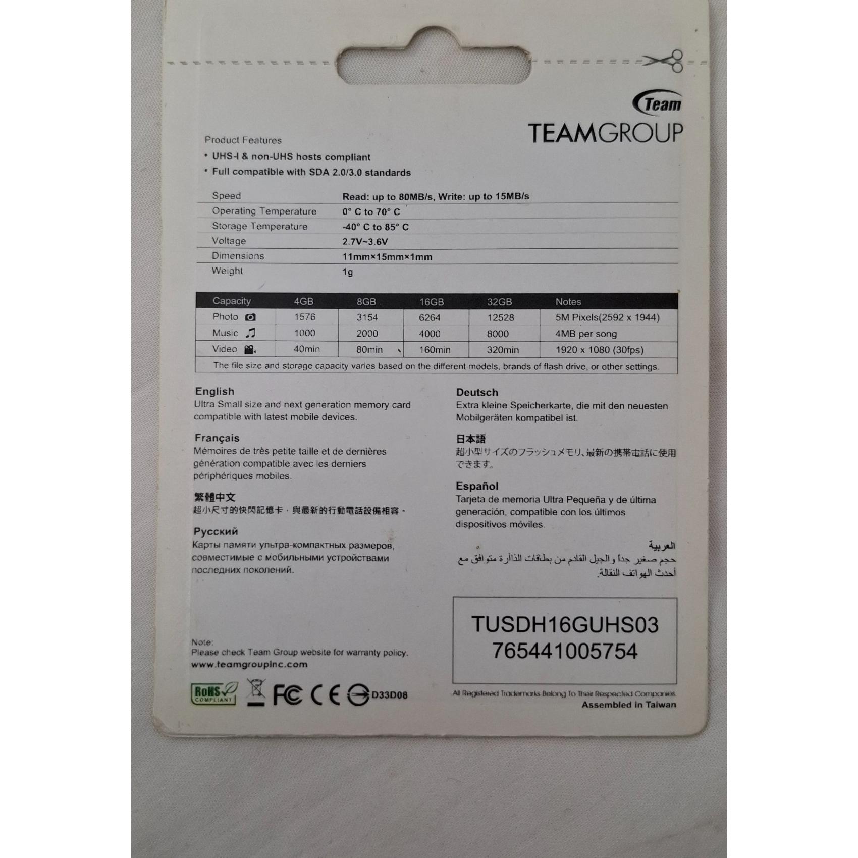 رم میکرو 16 گیگابایت تیم گروپ Teamgroup 500X U1 C10