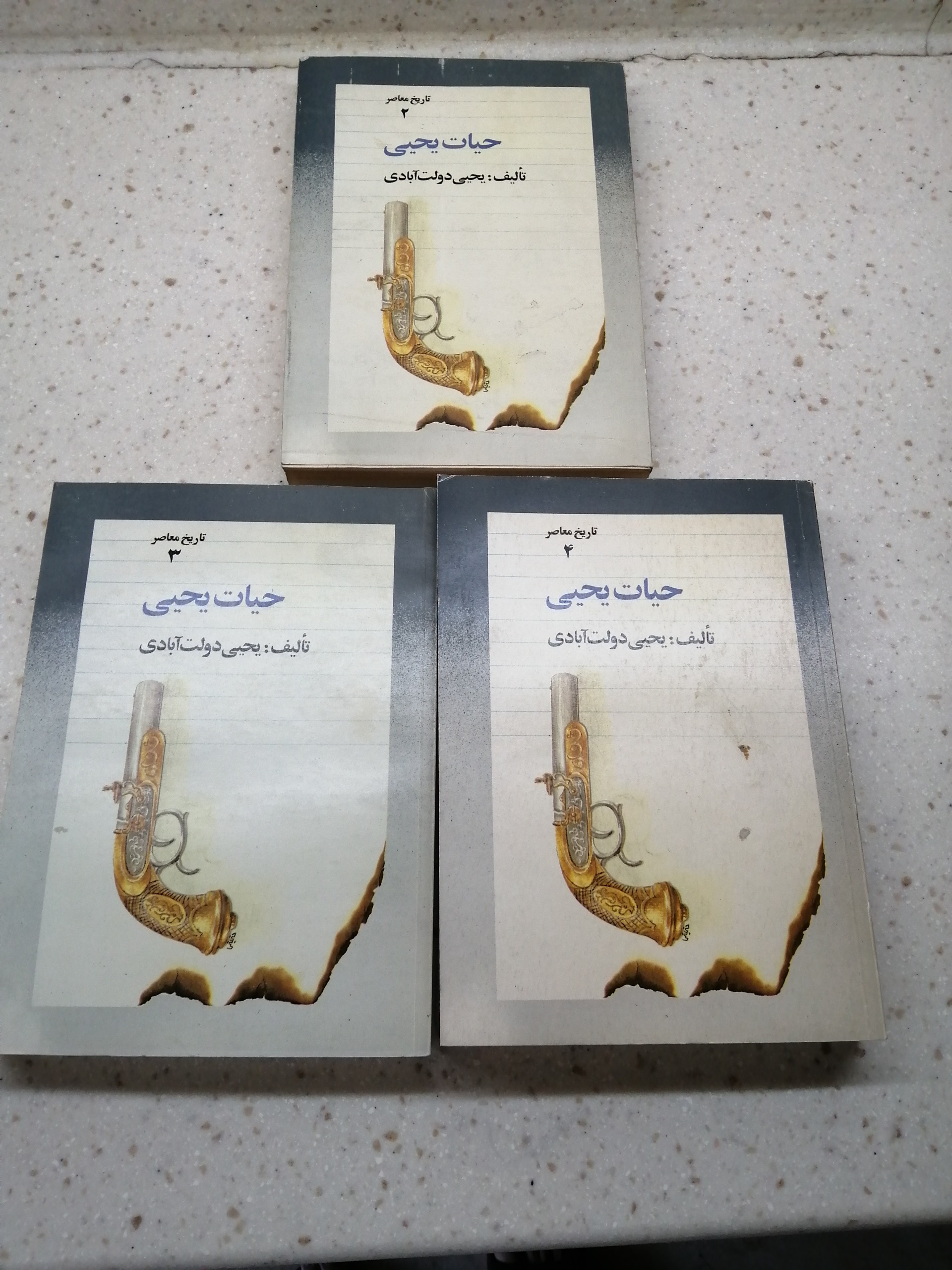 این سه جلد کتاب چاپ سال 1361 هستند و سالم و تمیز نگهداری شده اند. جلد دو و سه و چهار می باشند.