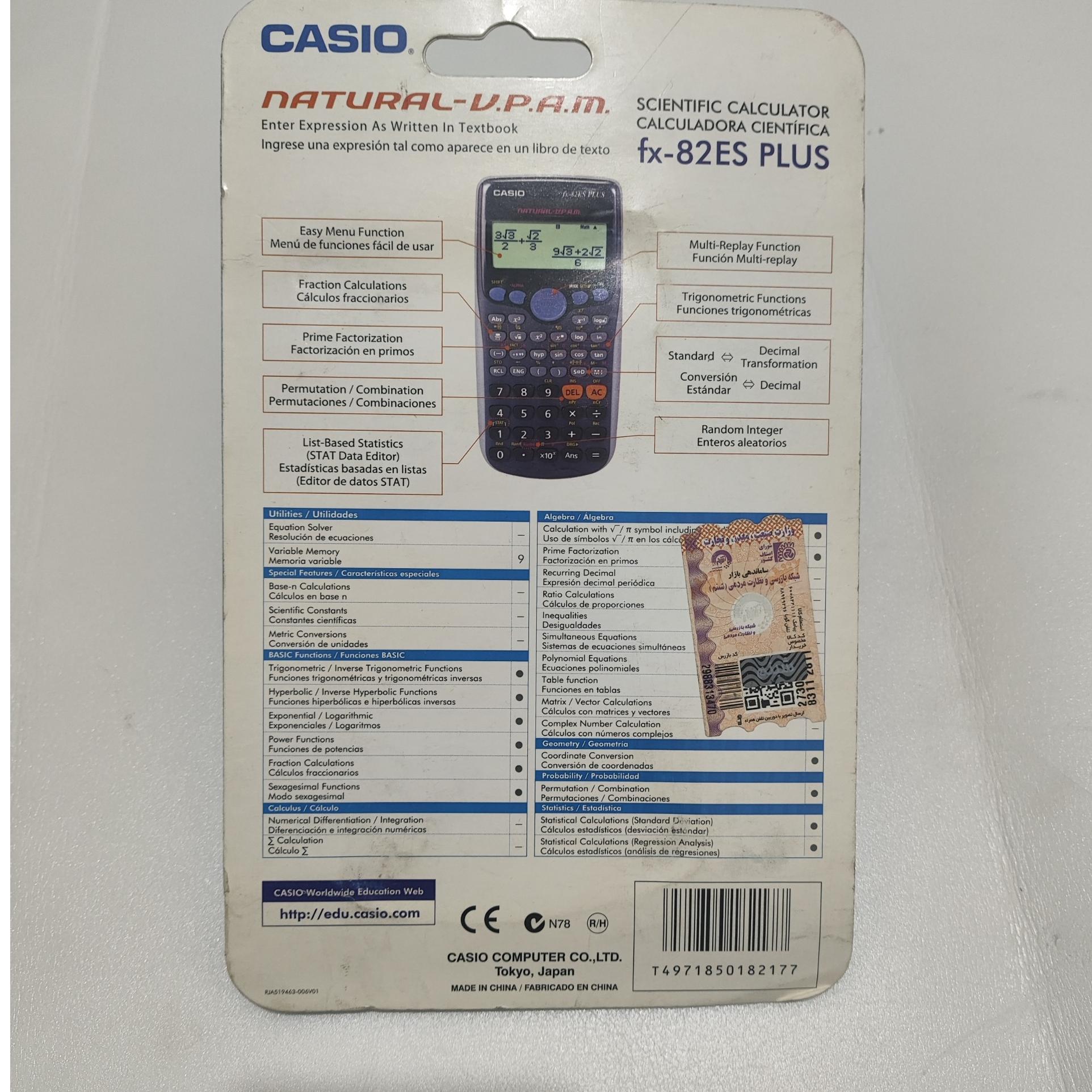 ماشینحساب «FX-82ES Plus» ساخت شرکت کاسیو یکی از مدلهای فنی و مهندسی این شرکت باقابلیت انجام محاسبات پیچیده و فنی است. قابلیت «Natural-V.P.A.M» که نسبت به مدل «FX-82ES» به این ماشینحساب اضافهشده عبارات ریاضی، مانند جزر و کسرها را عیناً مانند کتب درسی نمایش میدهد که درک مسائل را تسهیل میکند زیرا فهم نتایج بهدستآمده آسانتر است. این ماشینحساب حرفهای از فناوری ماتریس نقطهای برای نمایش عملیات بر روی صفحهی نمایش استفاده میکند. 252 تابع به همراه توابع مثلثاتی در این مدل قابلمحاسبه هستند. 9 حافظه اختصاصی برای متغیرها در نظر گرفتهشدهاند. آمار دوبعدی، تحلیل رگرسیون، محاسبهی اتوماتیک اعشار، جدول تابع، اعداد صحیح تصادفی از دیگر مواردی هستند که میتوان به آنها اشاره نمود. برق مصرفی دستگاه هم از باتری تأمین میشود 1 عدد باتری نیمقلمی در این دستگاه مورداستفاده قرار میگیرد. برای محافظت از دستگاه در برابر گردوخاک و ضربه درپوشی برای آن درنظر گرفته شده است.