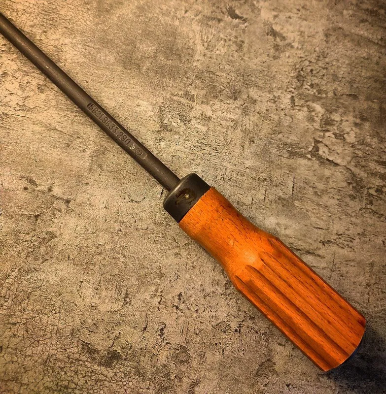 پیچ گوشتی دسته چوبی ضربه خور خیلی قدیمی تولید حدوداً 60 سال پیش، داخل موم و کاغذ پیچ شده،