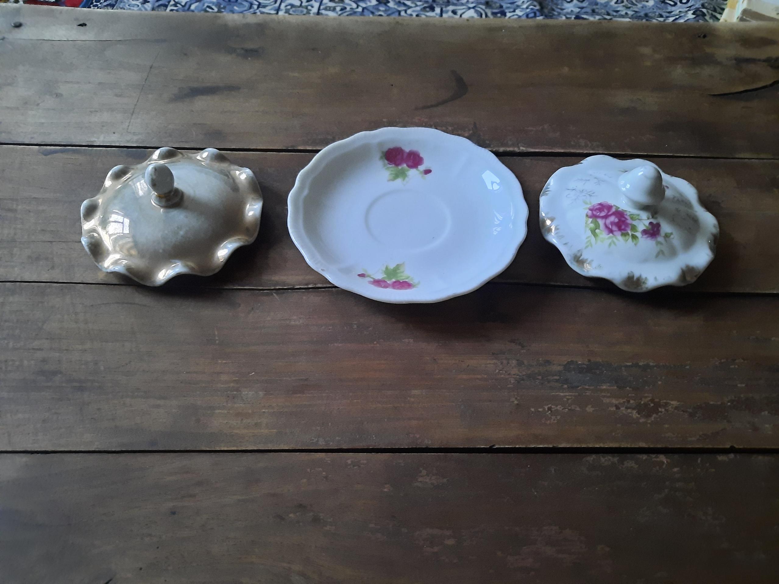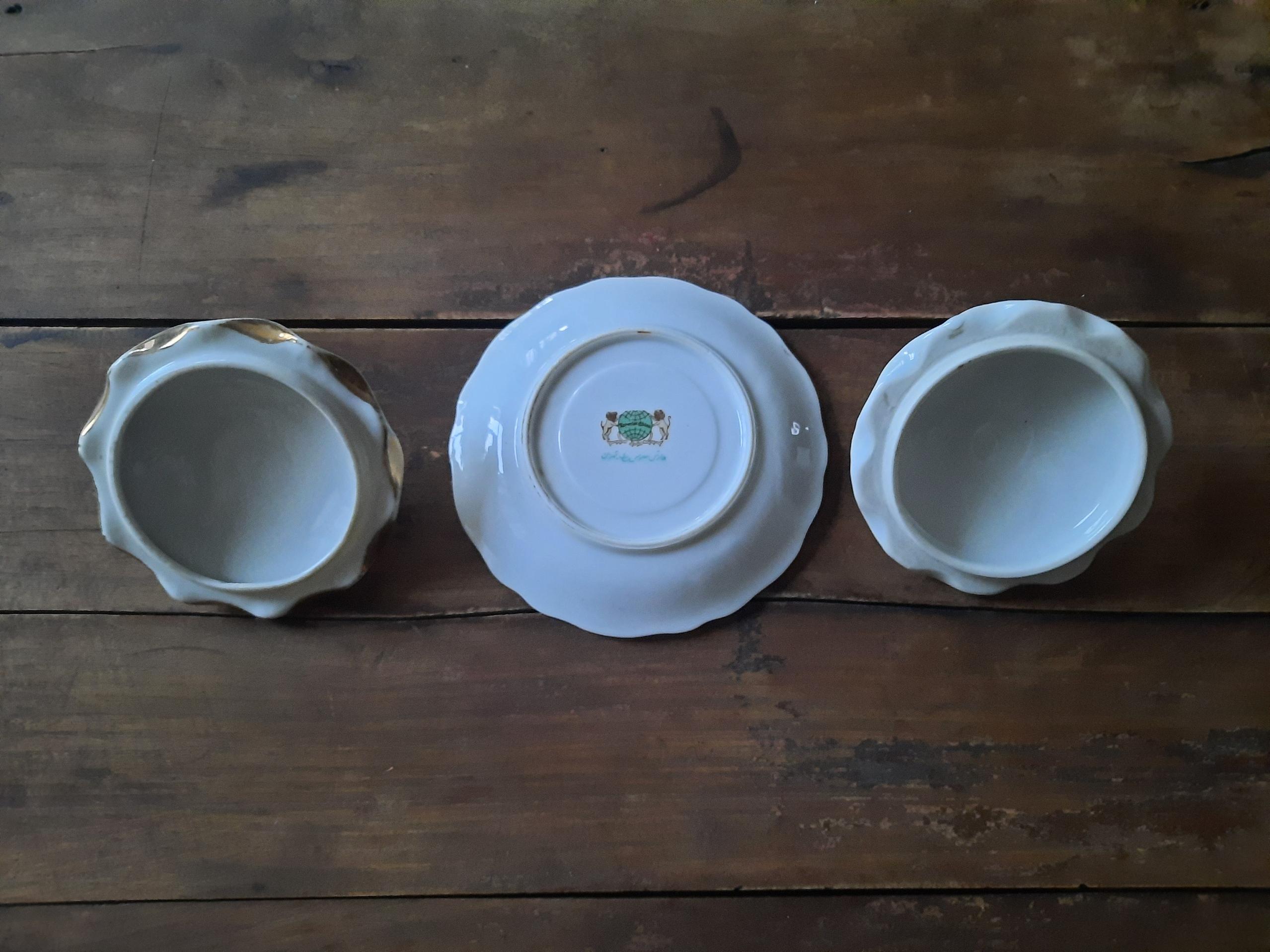 این مجموعه شامل یدونه درب قندون لب چین گل سرخی و یدونه نعلبکی گل سرخی و یدونه درب قندون لب چین قدیمی