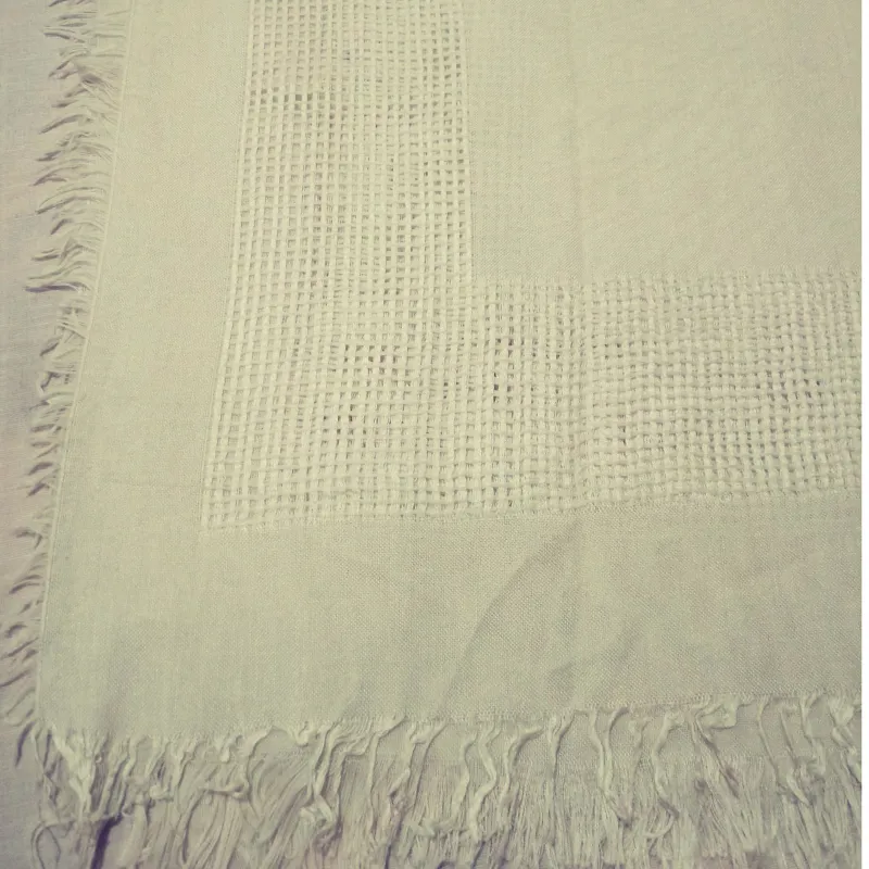 شال کرم رنگ نخی حاشیه توری قواره بزرگ
