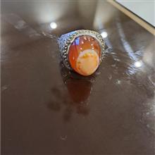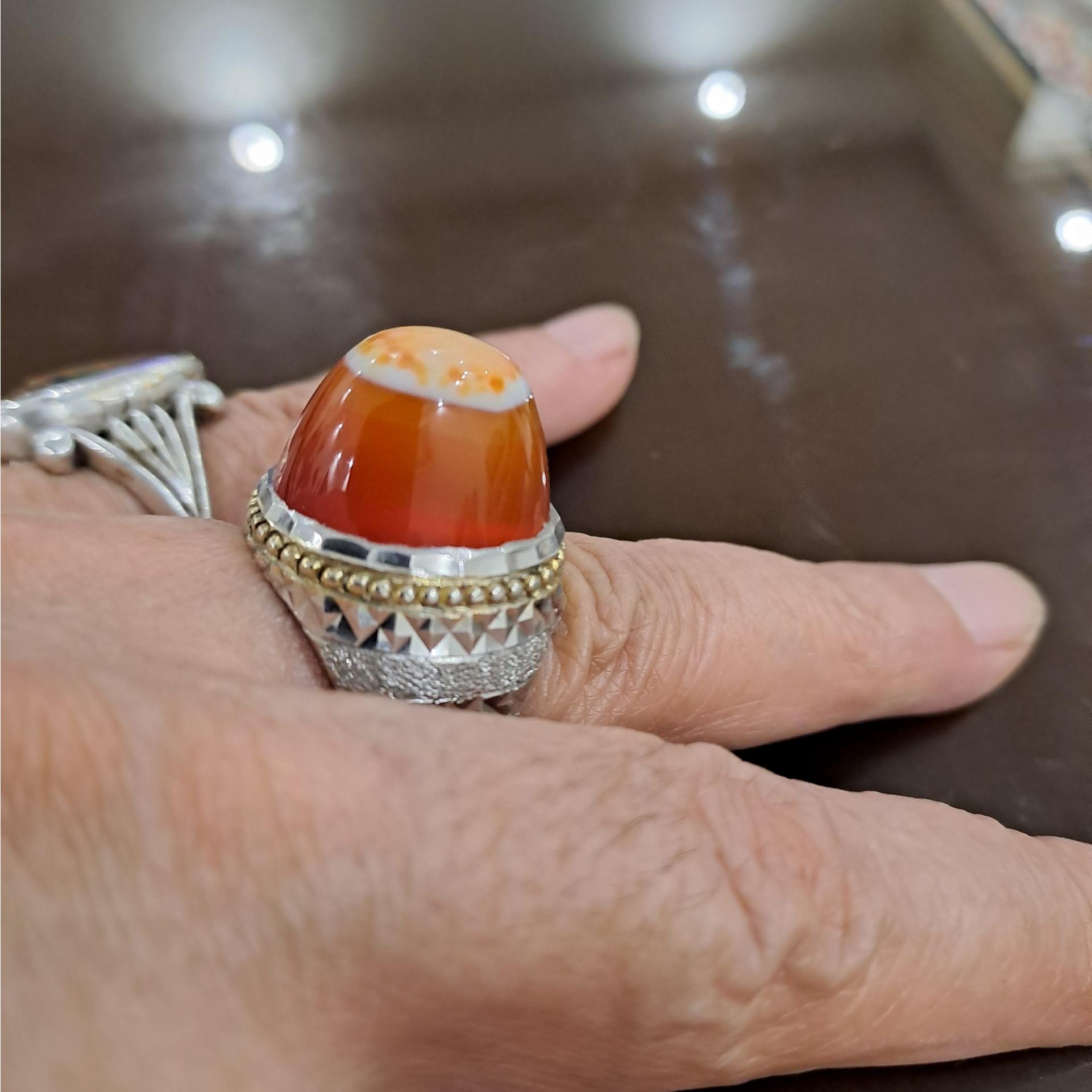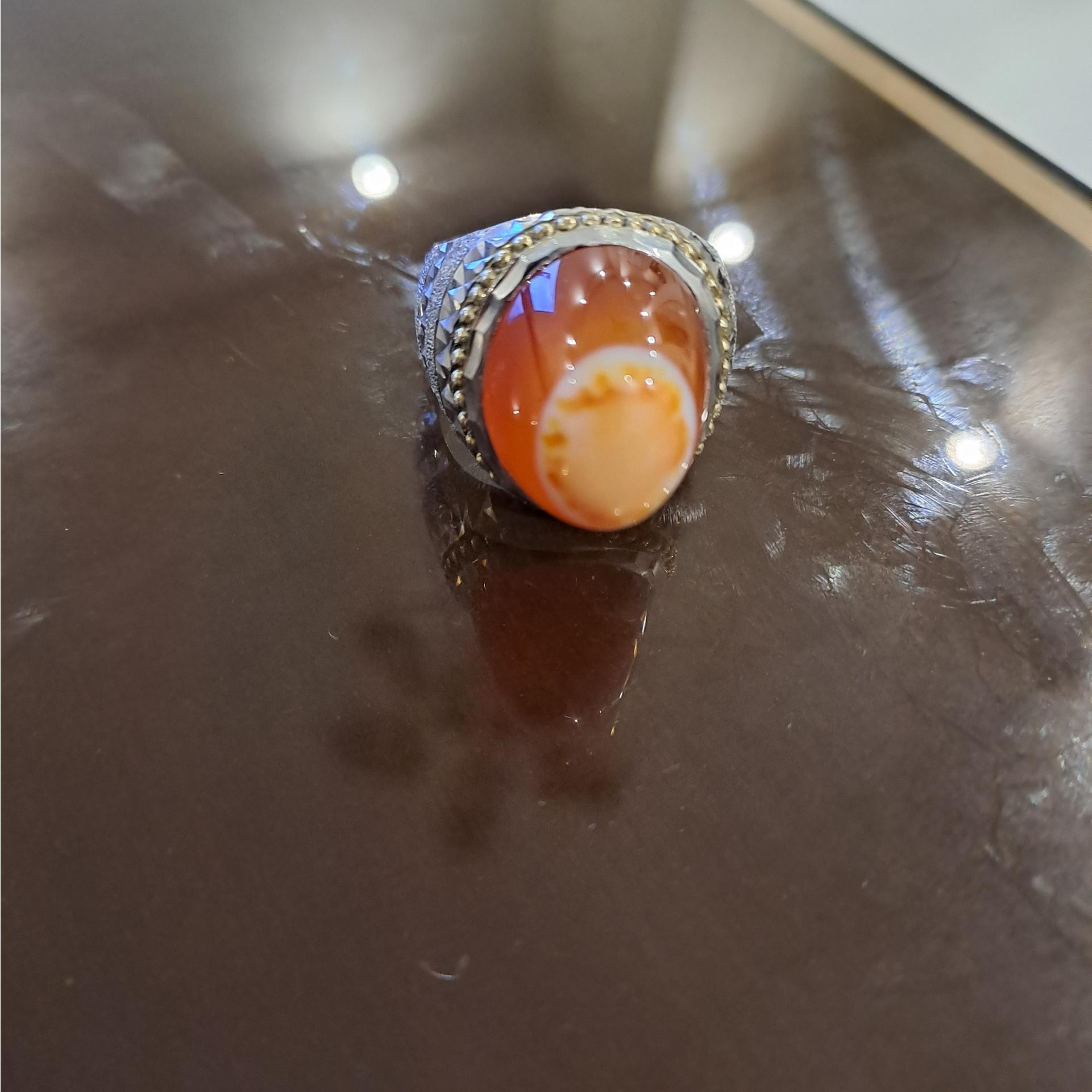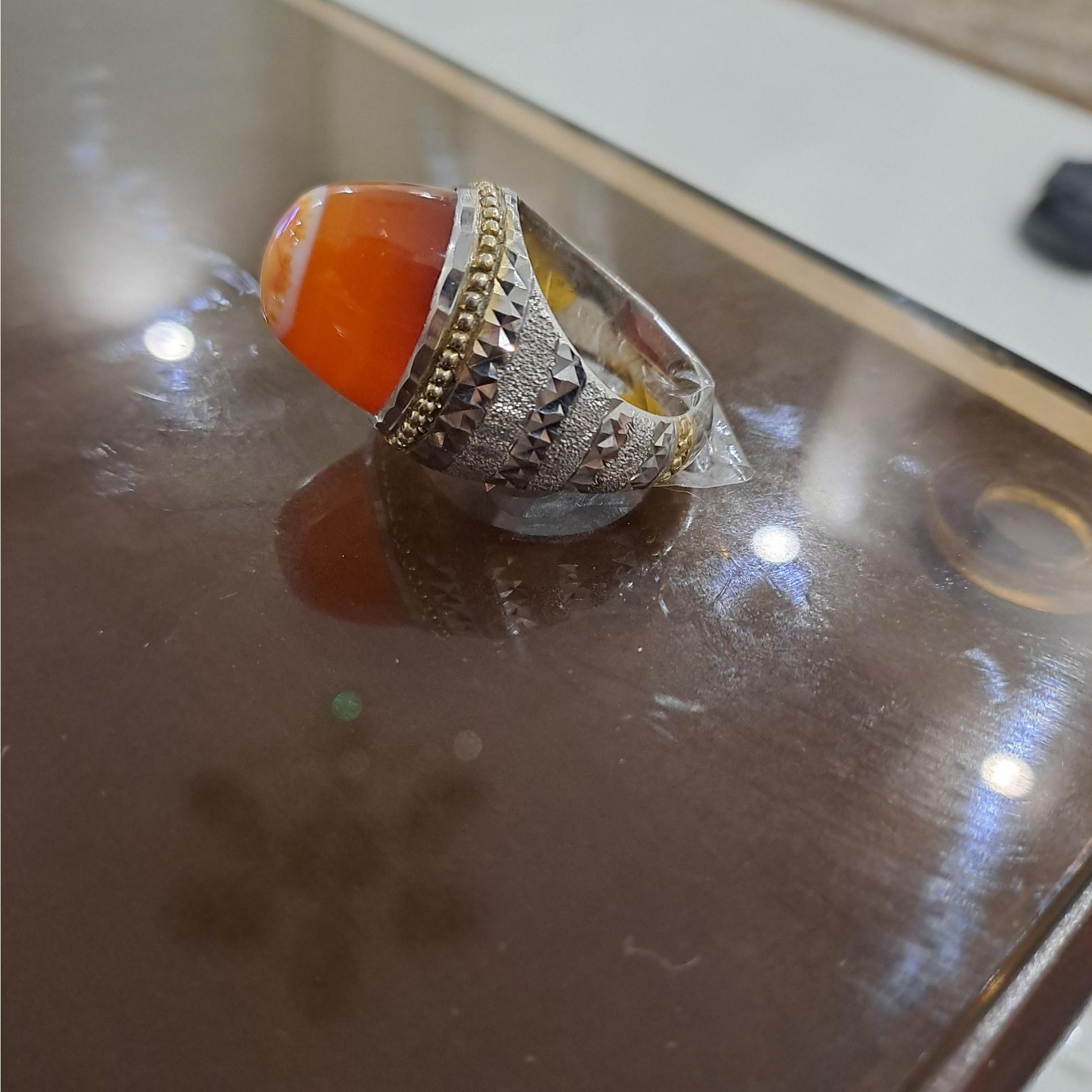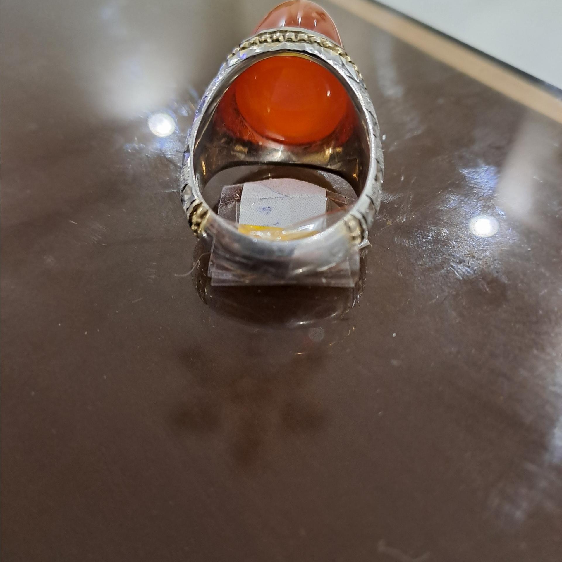 انگشتر عقیق پرتغالی کلاه دار رکاب آئینه کاری استاد سروش وزن 23/08 گرم سایز 62