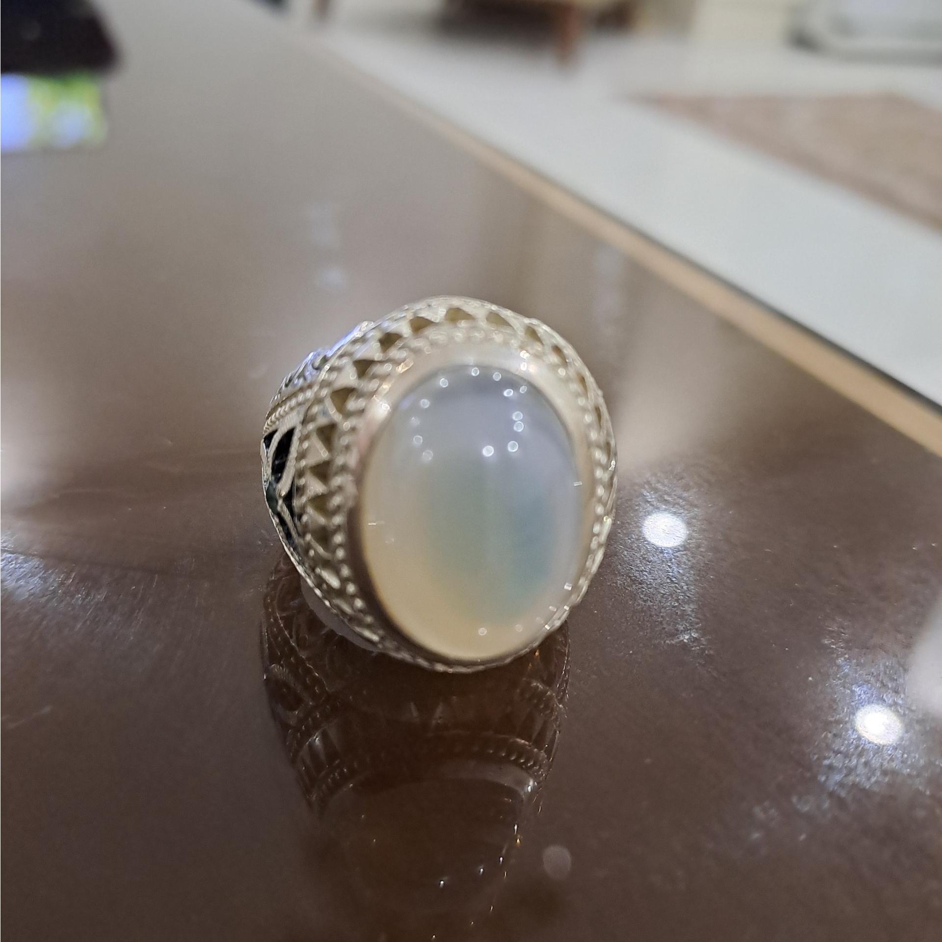 انگشتر عقیق کلاه دار ابی رکاب دستساز صدوقی