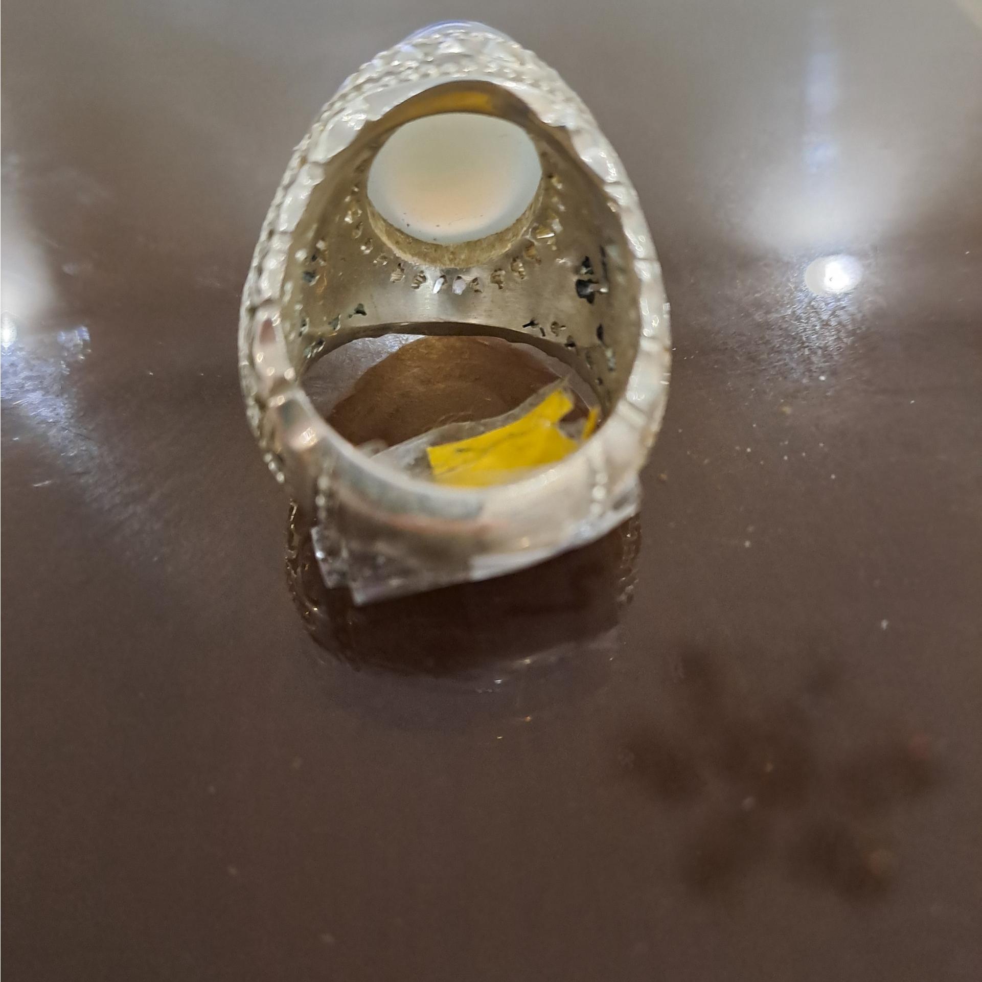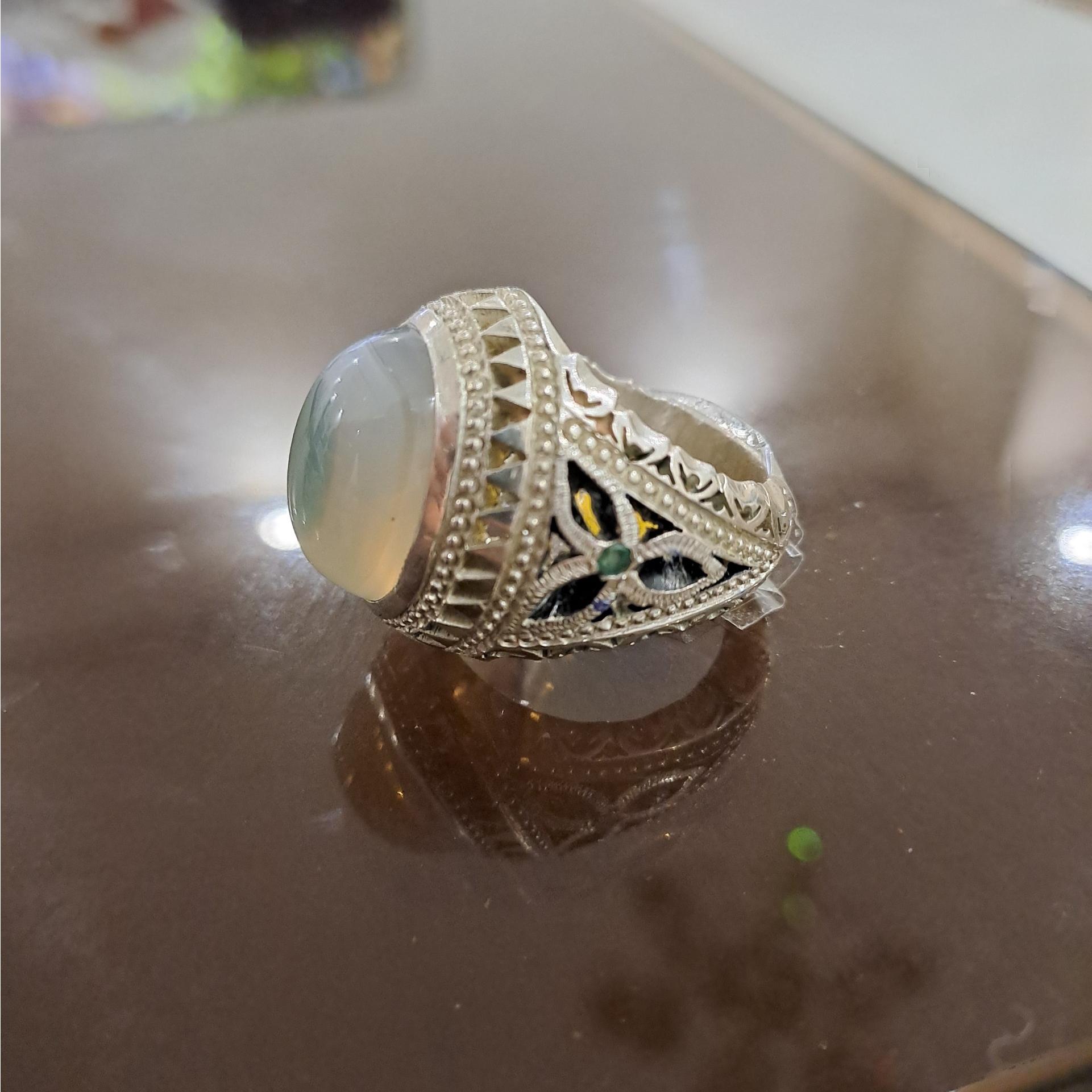 انگشتر عقیق یاسی سه رنگ زیبا رکاب دستساز استاد صدوقی وزن 26/69 گرم سایز 64