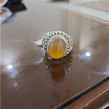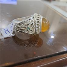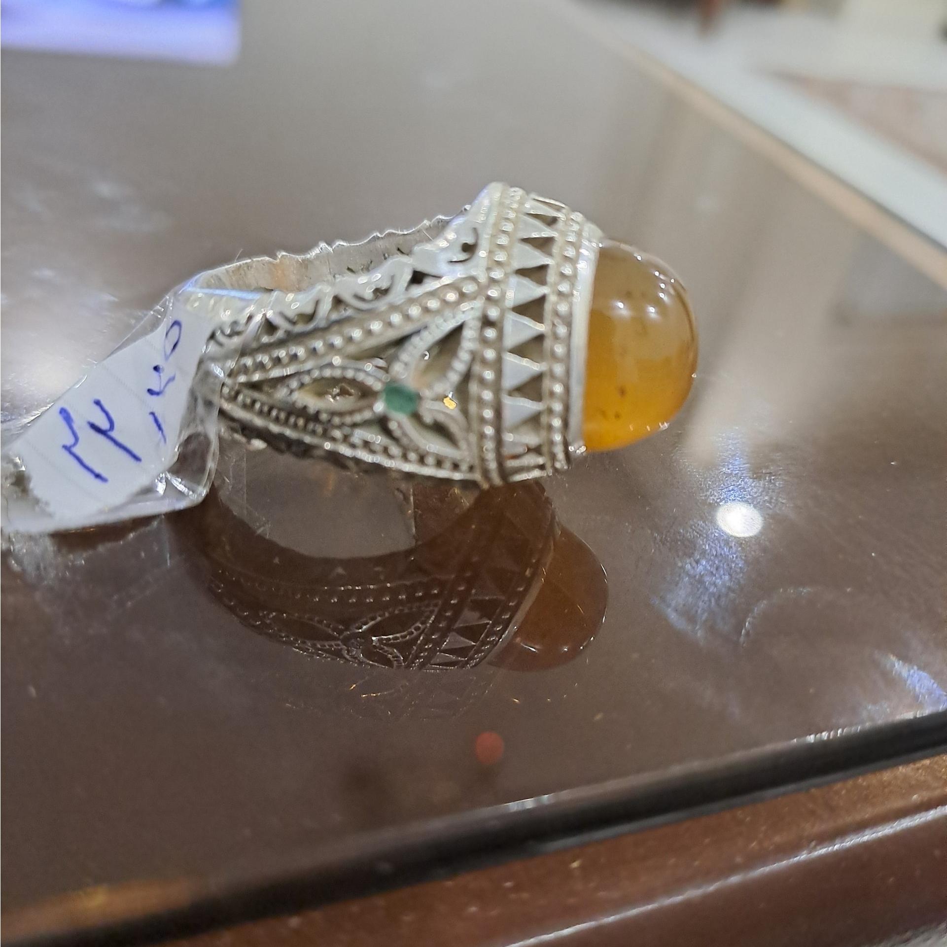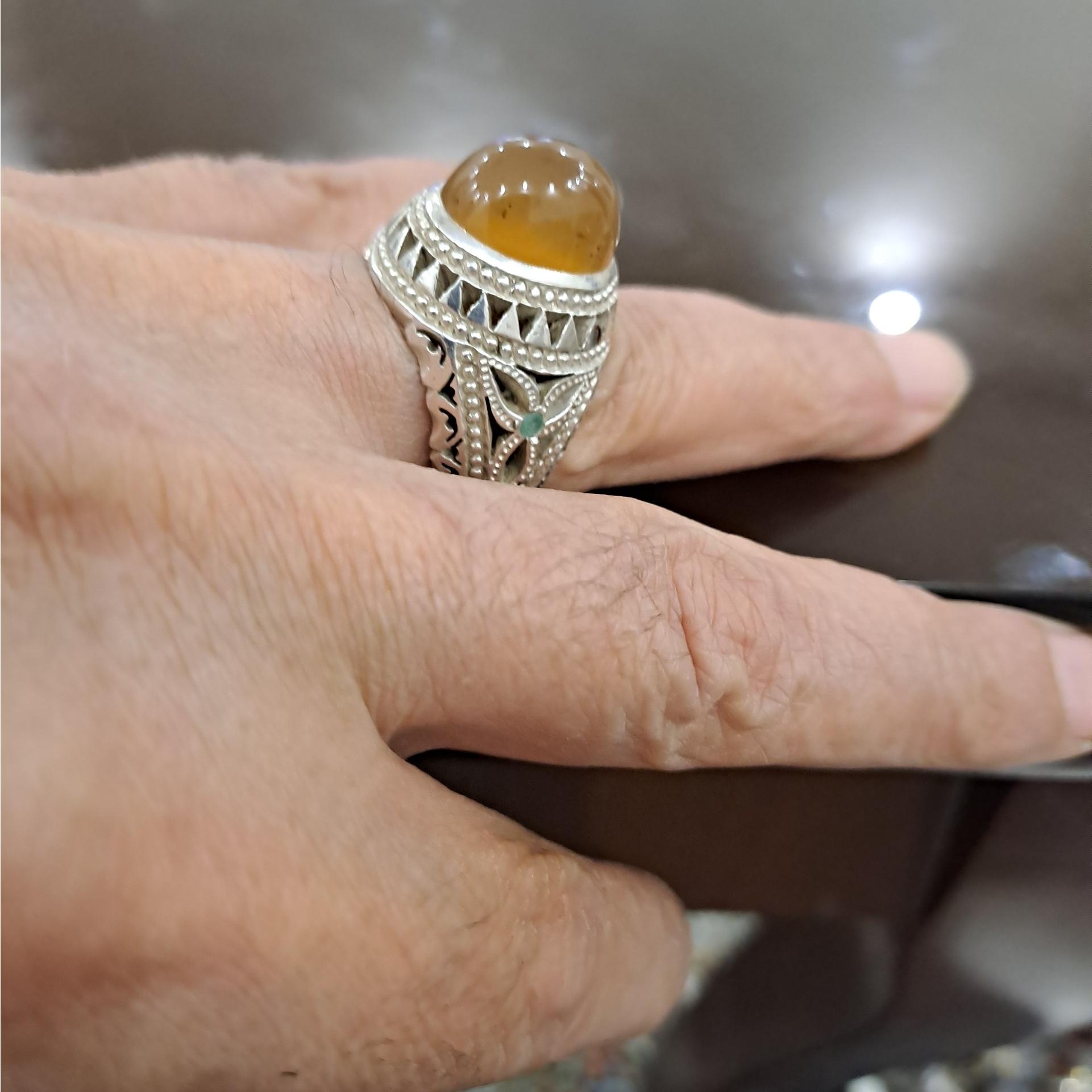 انگشتر عقیق خوشرنگ خردلی رکاب دستساز استاد صدوقی وزن 22/25 گرم سایز 62