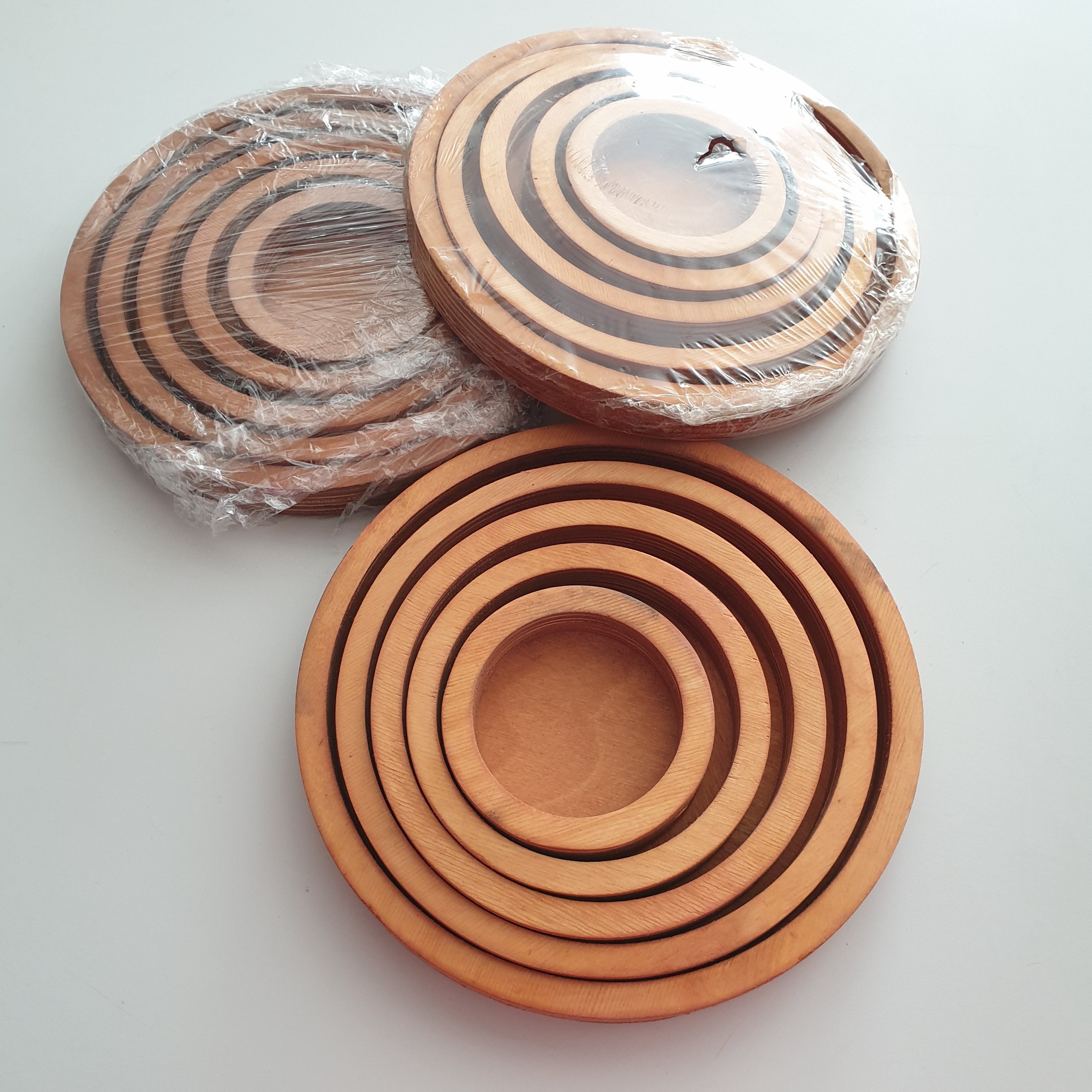 ست چوبی 5تکه گرد (سینی بشقاب پیشدستی زیرلیوانی)