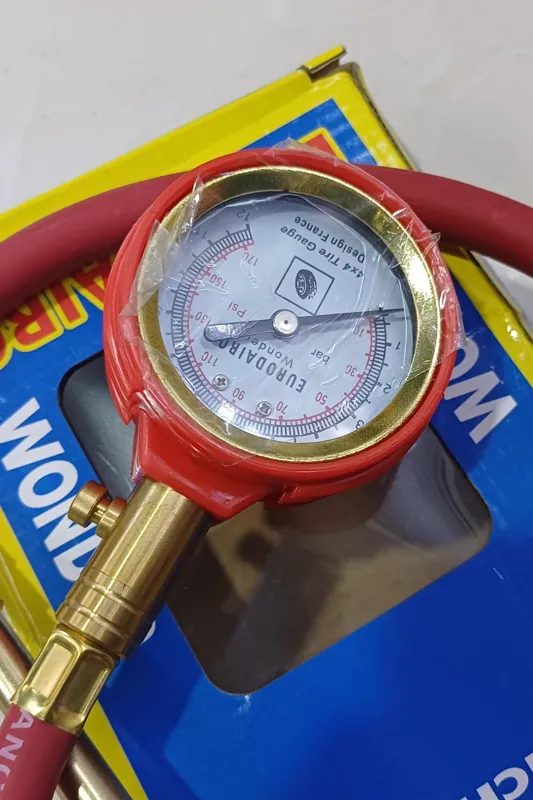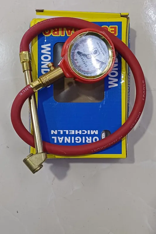 گیج باد چرخ و لاستیک میشلن MICHELLN مدل WONDER TURBOبا نازل بلند دو طرفه تمام برنجی جهت لاستیک هایی که نازل بادشان در معرض دید مسقیم نمیباشد ،دارای کلید و دکمه حافظه برنجی جهت ثابت نگه داشتن لحظه ایی میزان باد چرخ و روئیت آن که با فشردن این دکمه عقربه روی عدد صفر قرار گرفته و کالیبره میشود. دارای حفاظ و گارد ژله ایی و لاستیکی جهت مراقبت از ضربه و سقوط از ارتفاع گیج باد.مخصوص خودروهای سواری، سبک و سنگین
