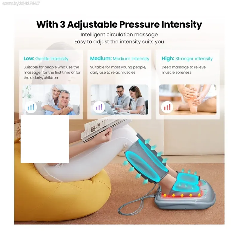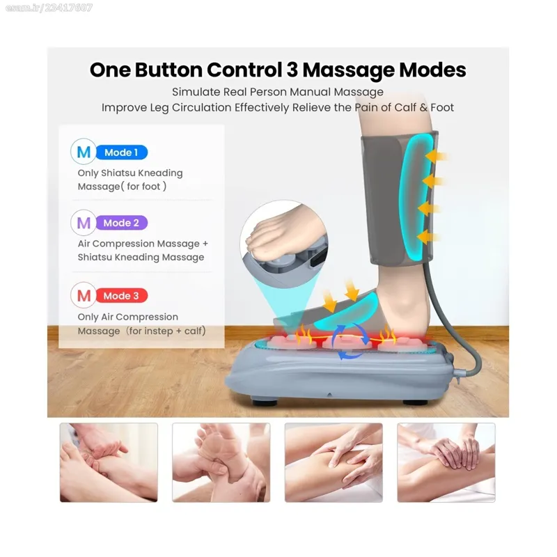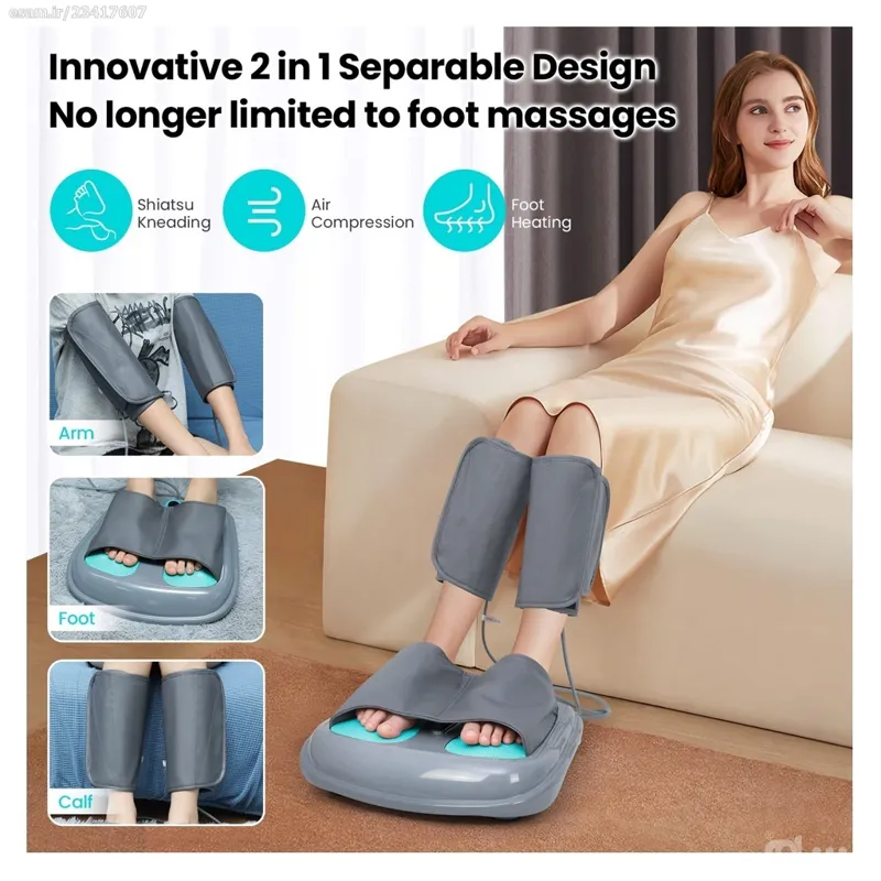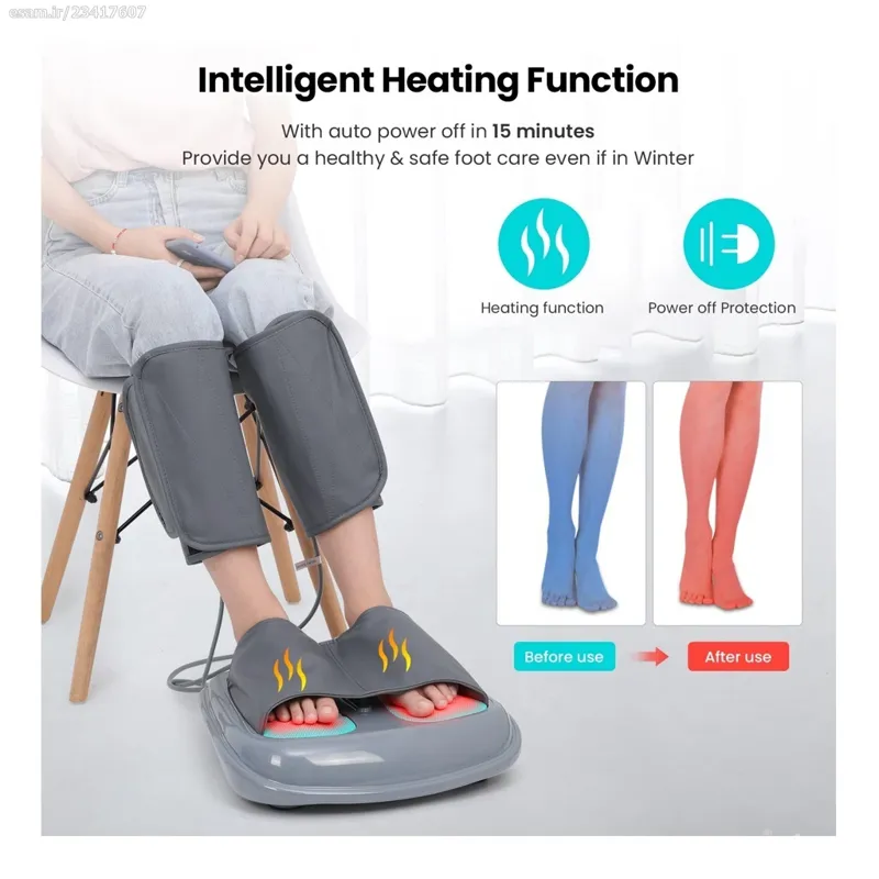 ماساژور پا و پا ROIPUS، ماساژ پا 2 در 1 با عملکرد گرما، ماساژور ساق پا شیاتسو با فشار هوا، ماساژور برقی ساق پا برای تسکین درد، ساق پا، آرامش بخش پا