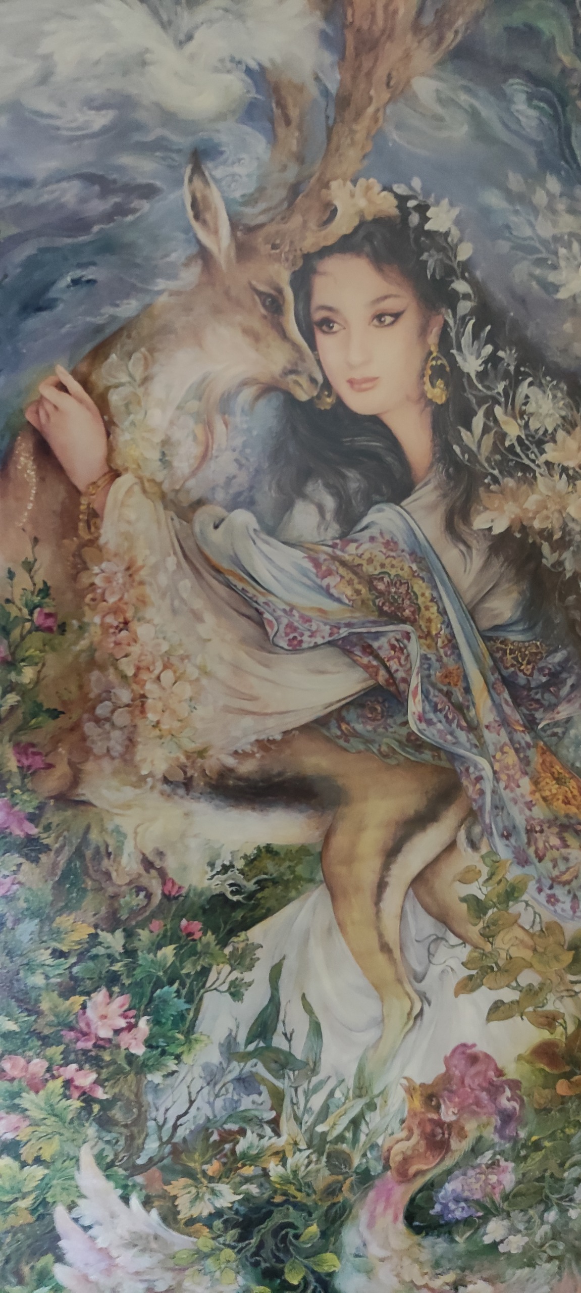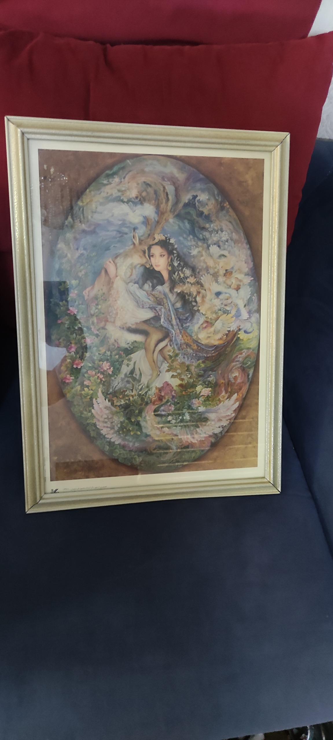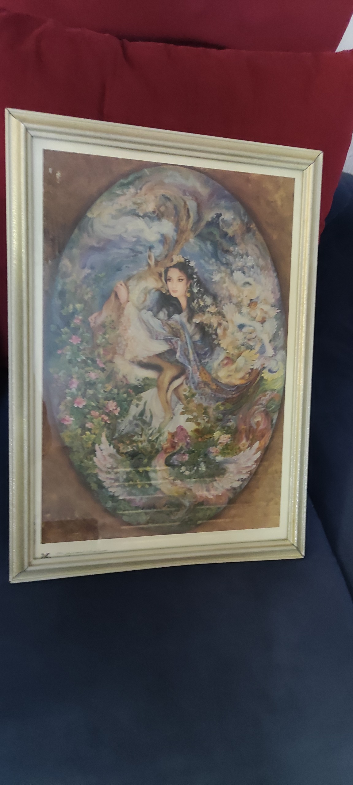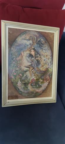 قاب و تابلو همراه با پوستر مقوایی چاپ شده از تصویر هنر استاد فرشچیان حدود 30 در 40 سانت