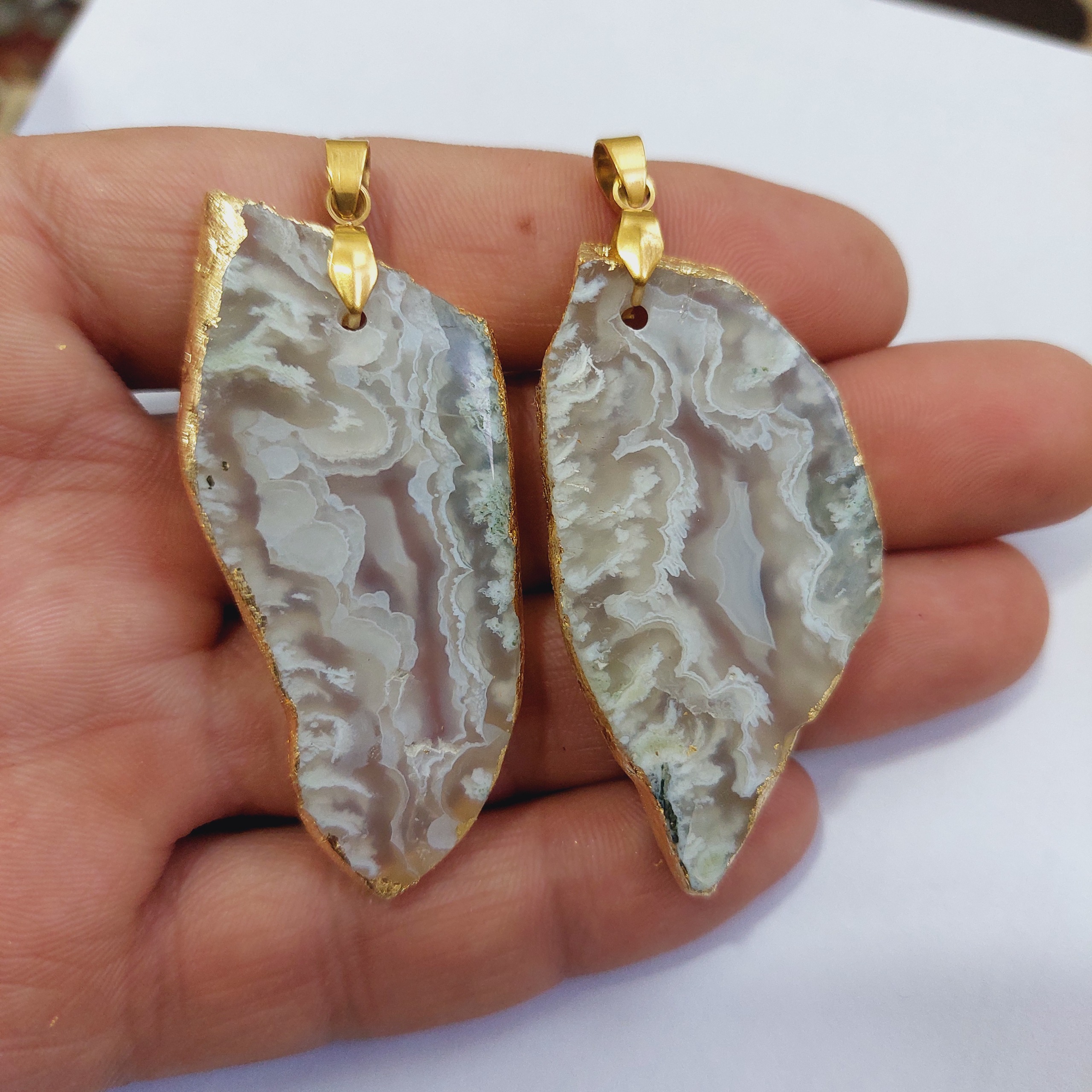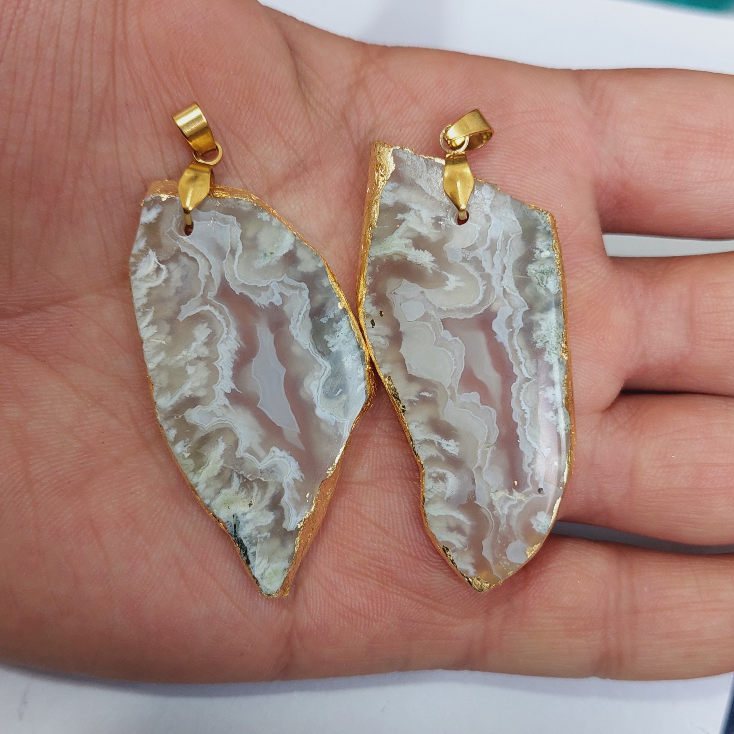 ست دو نفره گردنبند های سنگ طبیعی عقیق سلیمانی که دور تا دور سنگ با ورق طلا تزئین شده فوق العاده خاص و زیبا