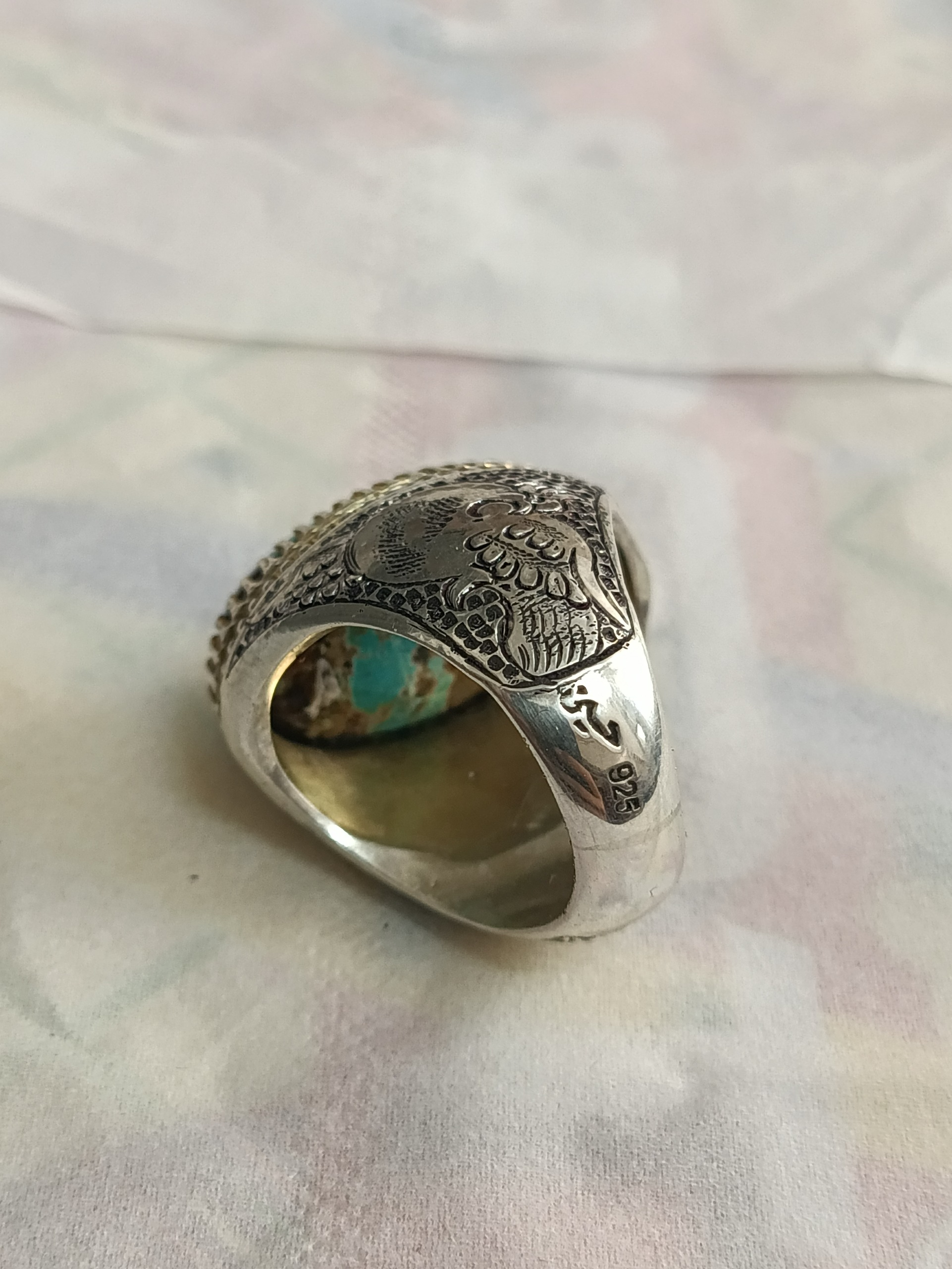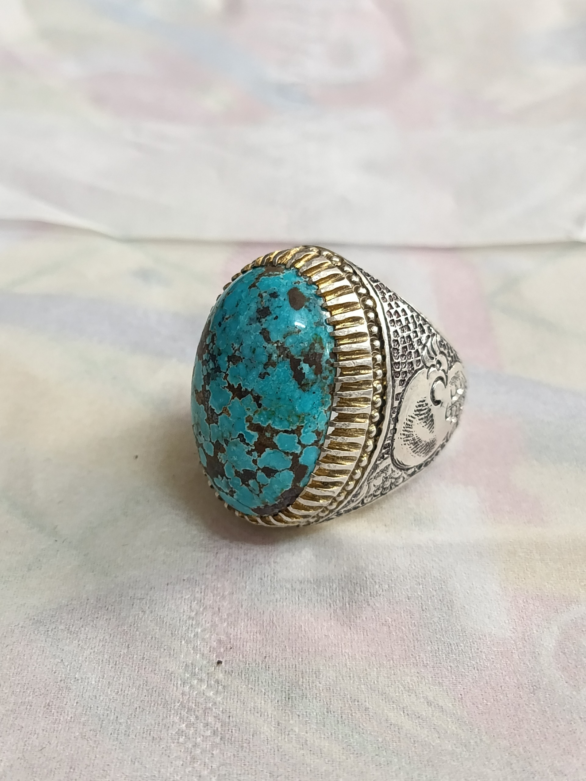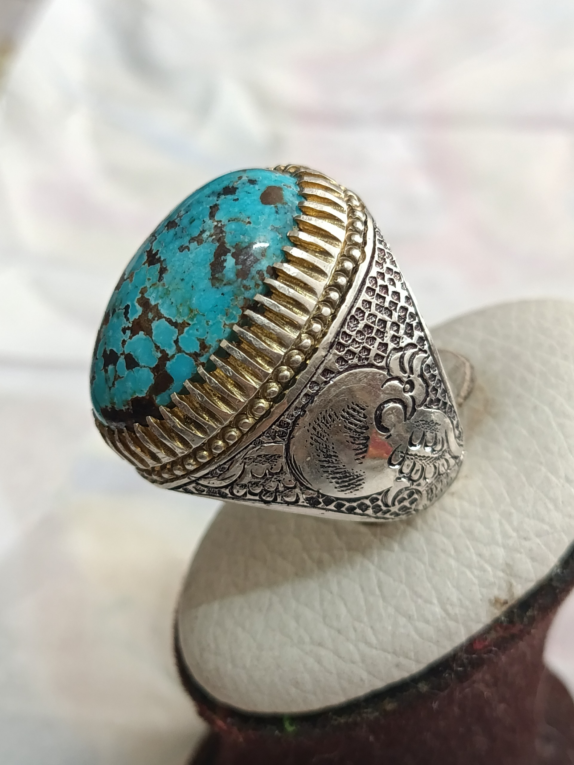 انگشتر فیروزه نیشابور سنگ معدنی خوش طبع رکاب دستساز نقره 925 قلم کاری شده