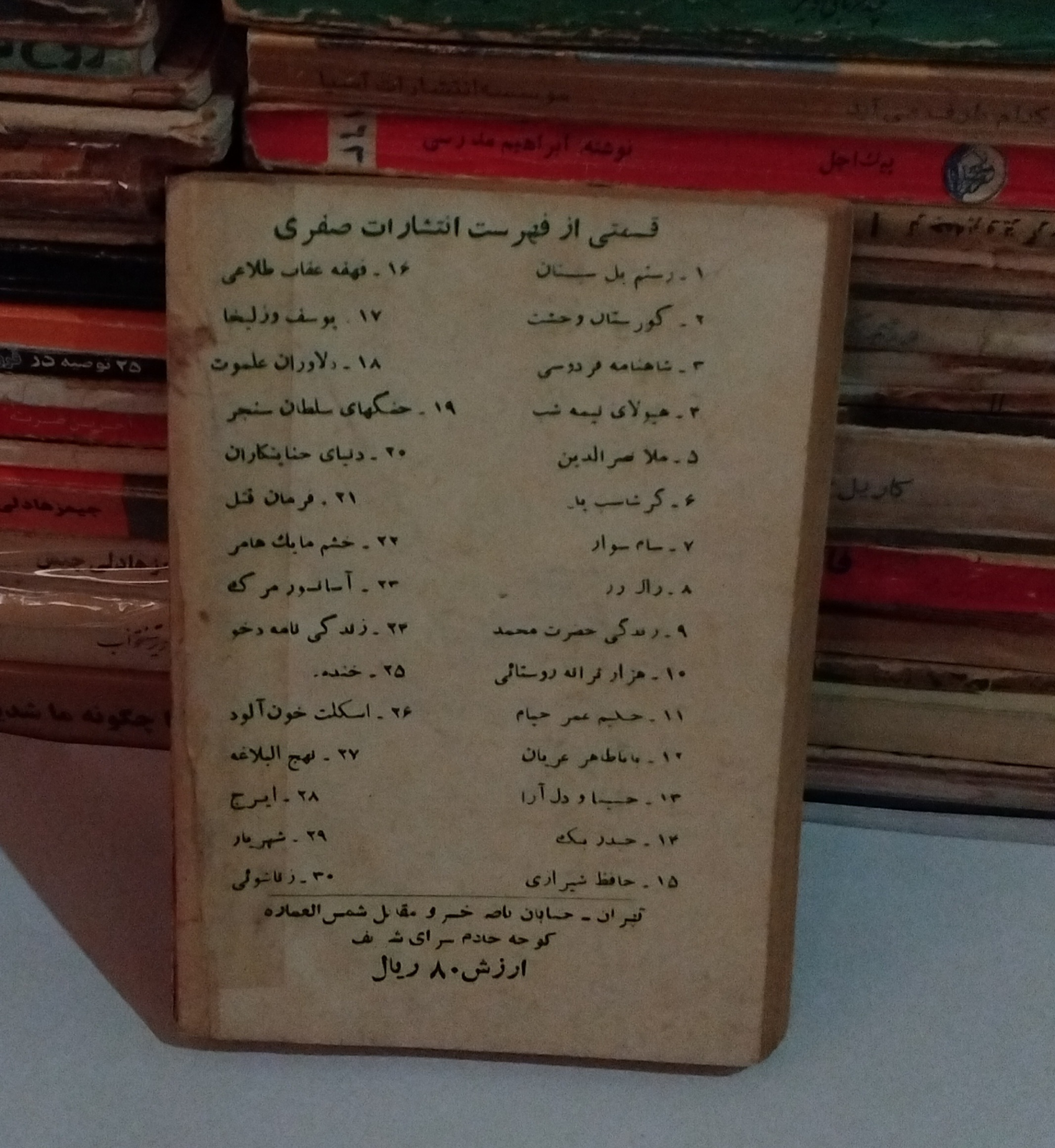 تمام صفحات کتاب سالم و تمیز است، فقط قسمت عطف کتاب چسب دارد. درست مطابق تصویر