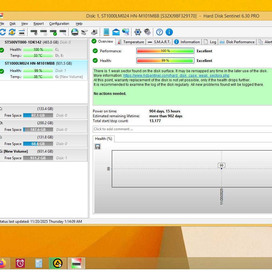 سلامت هارد طبق تصویر 99 درصد میباشد