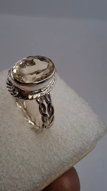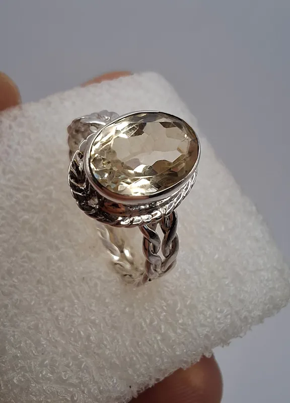 انگشتر نقره 925 دستساز با نگین سیترین معدنی حراج
