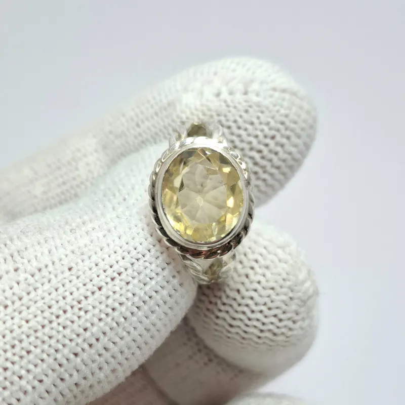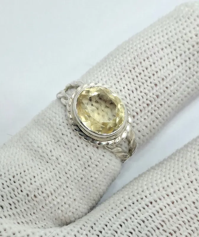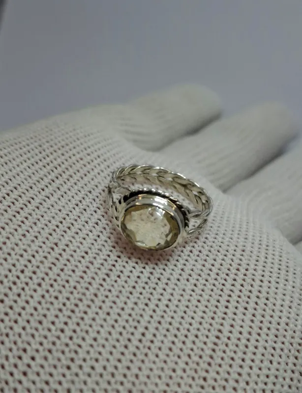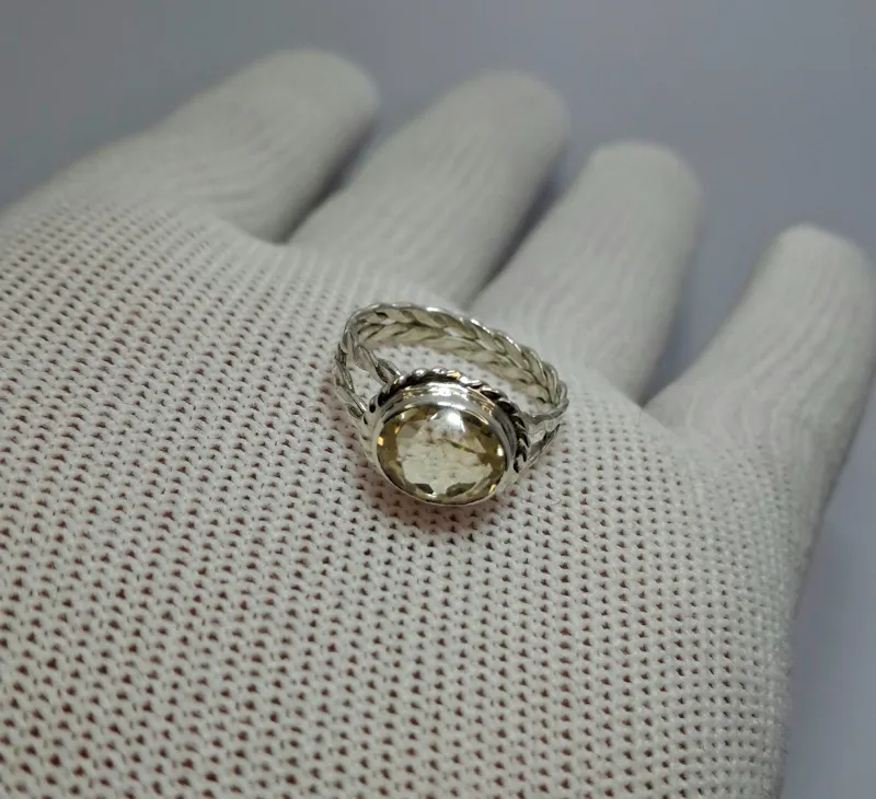 انگشتر نقره 925 دستساز با نگین سیترین معدنی حراج