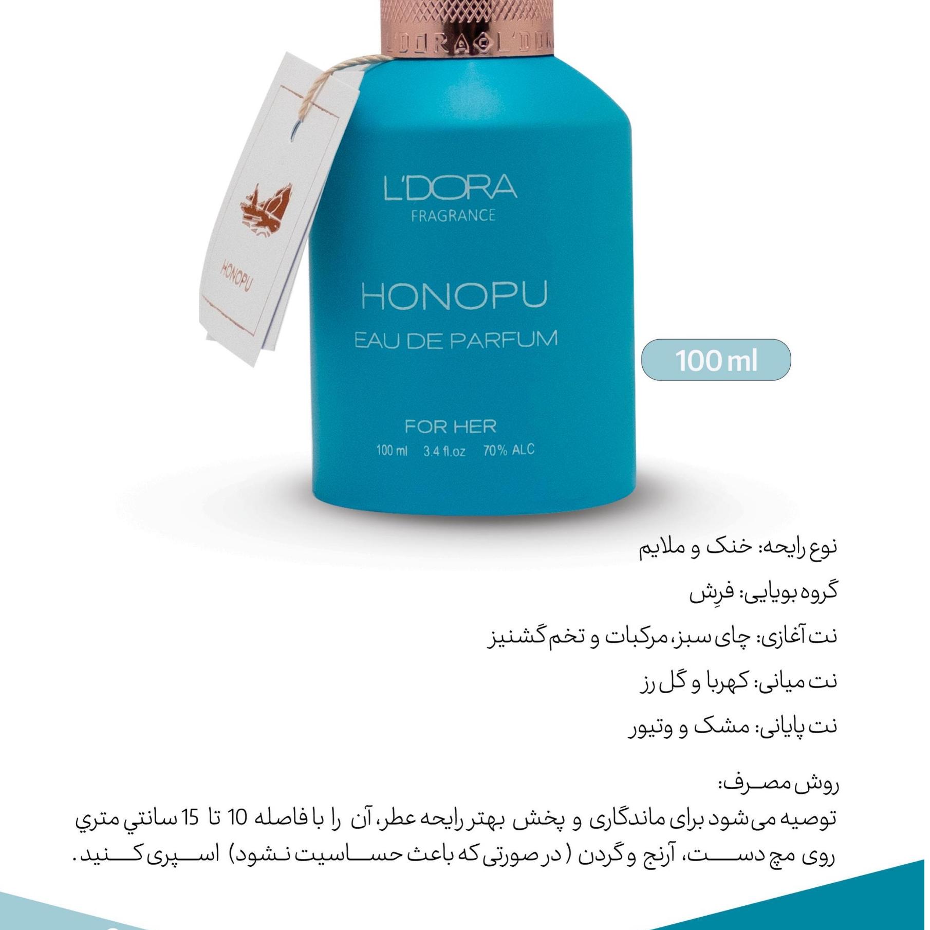 ادوپرفیوم زنانه مدل HONOPU لدورا فرگرنس