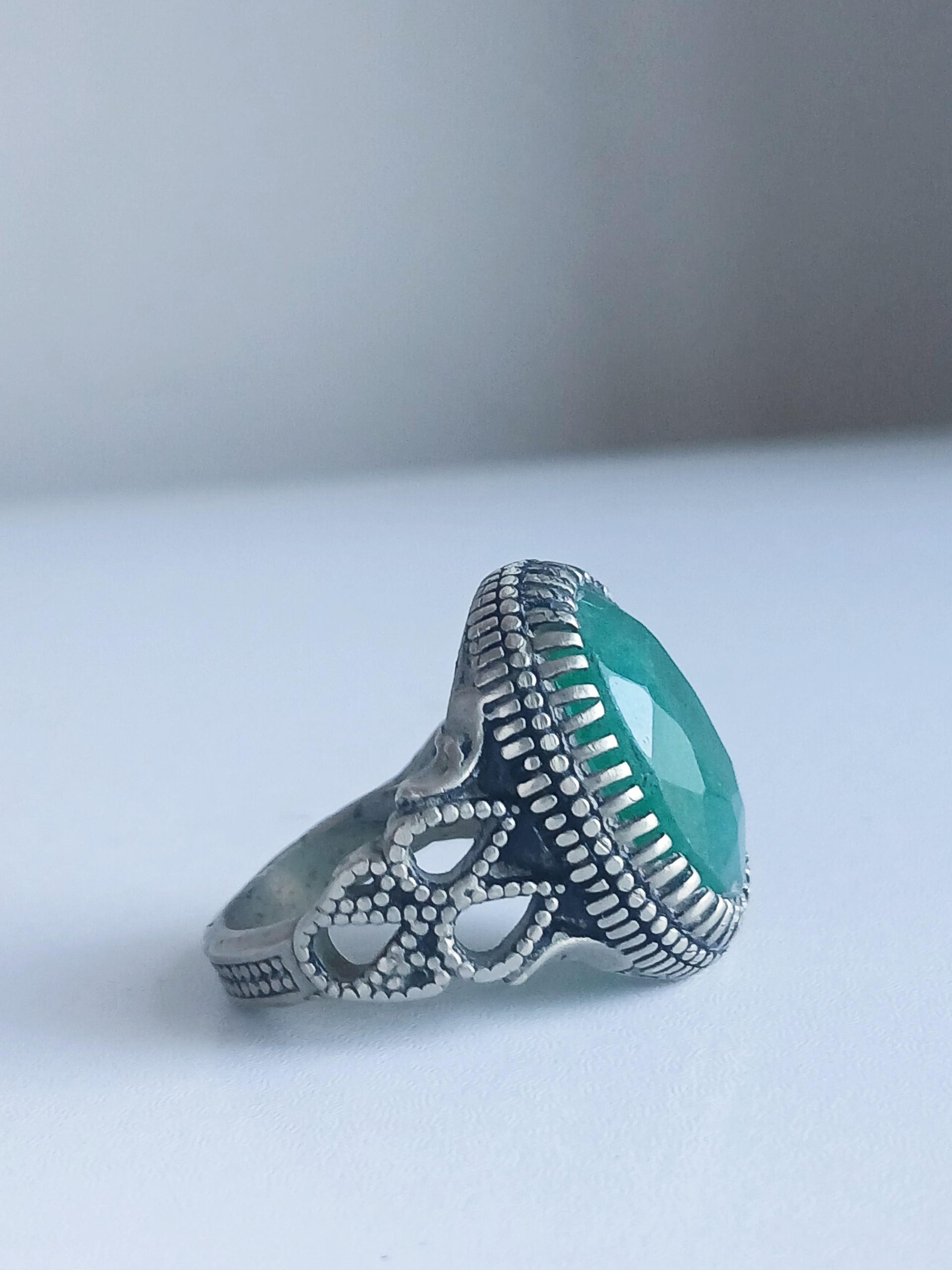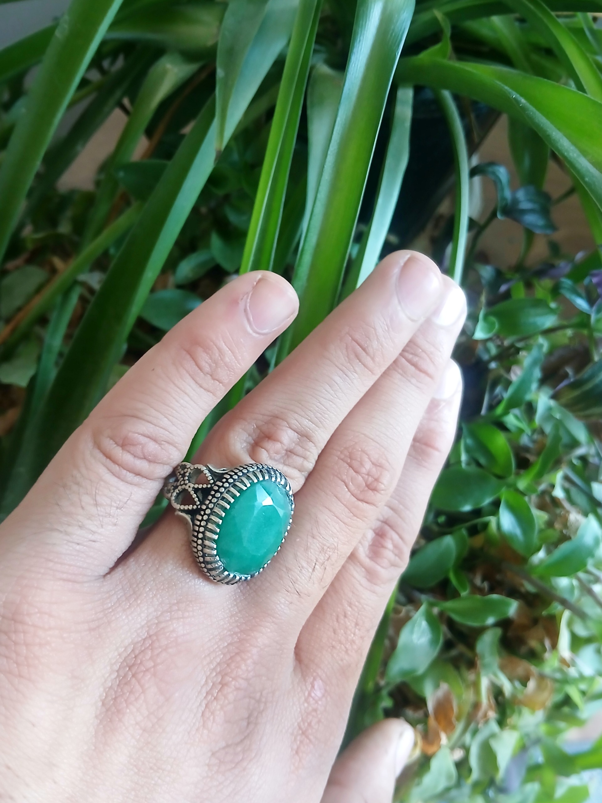 کیفیت فوق العاده. نگین زمرد هندی. انگشتر سایز 61