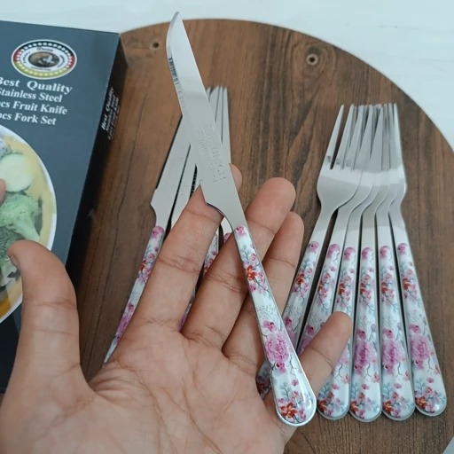کارد و چنگال میوه خوری 12 عددی طرح سرامیکی