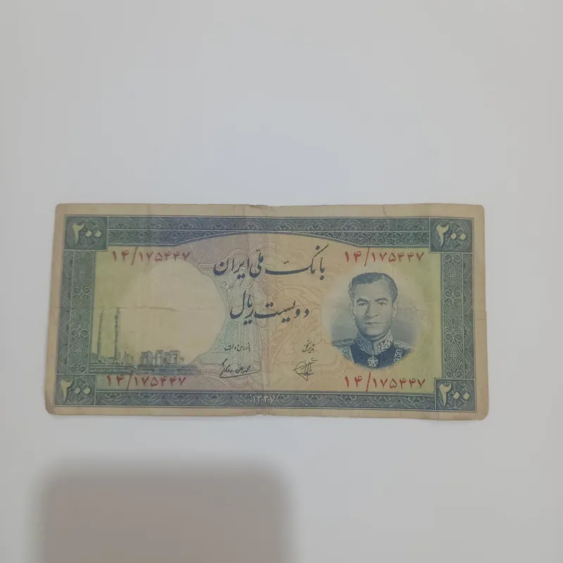 یک برگ اسکناس 200 ریالی فرودگاهی دست دوم با کمی پارگی خیلی کم که در تصاویر زوم شده قابل دیدن میباشد و اینکه ملاک خرید خود را تصاویر قرار دهید و اینکه قیمت یک برگ نو و بانکی همین اسکناس بالای 6 میلیون میباشد