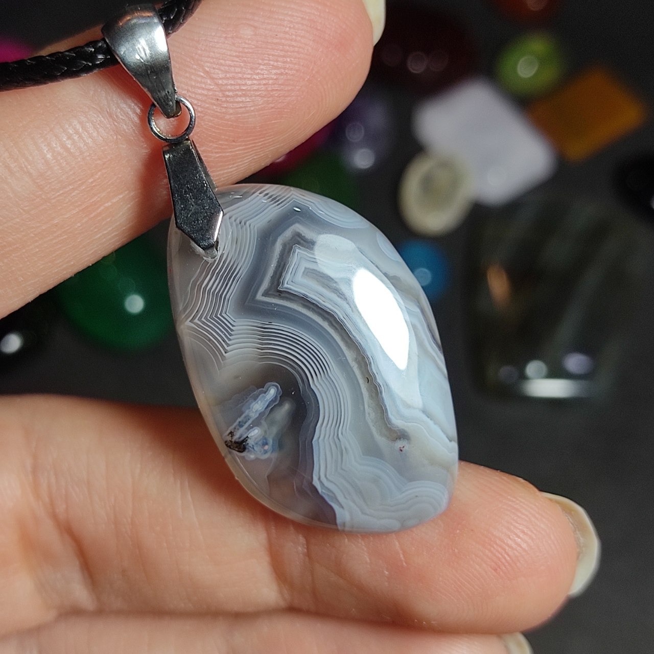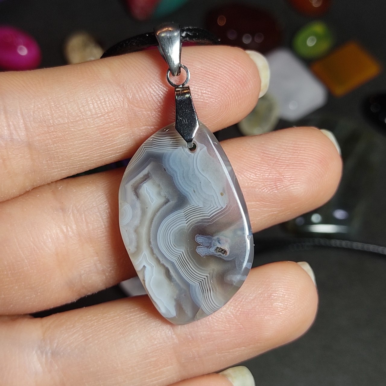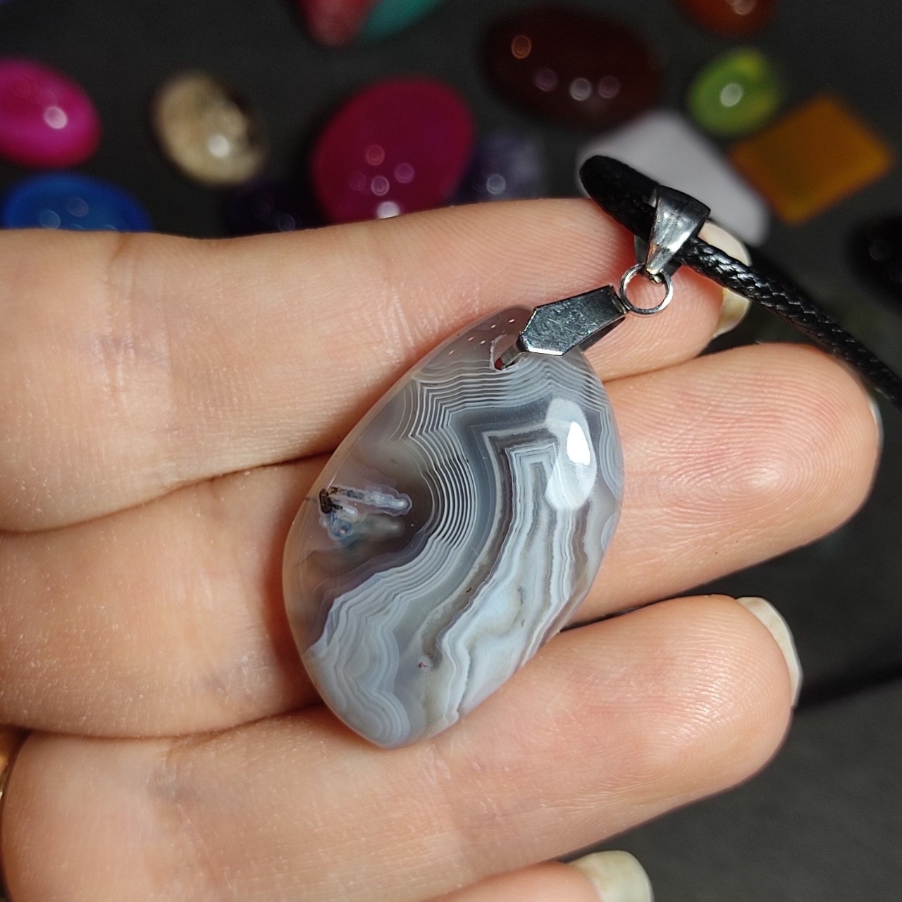 گردنبند سنگ طبیعی عقیق سلیمانی معدنی بوتسوانا