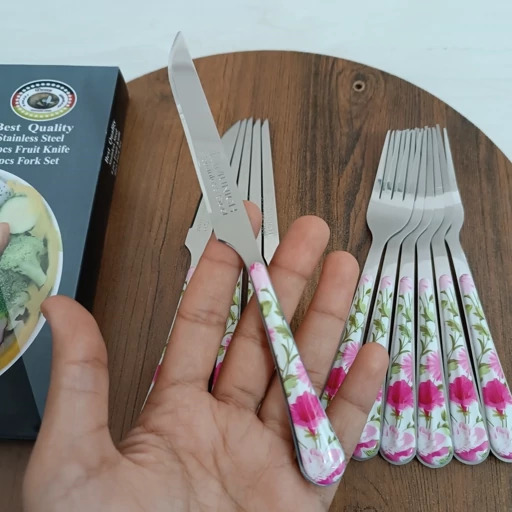 کارد و چنگال میوه خوری 12 عددی سرامیکی طرح گل