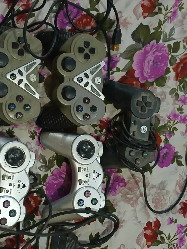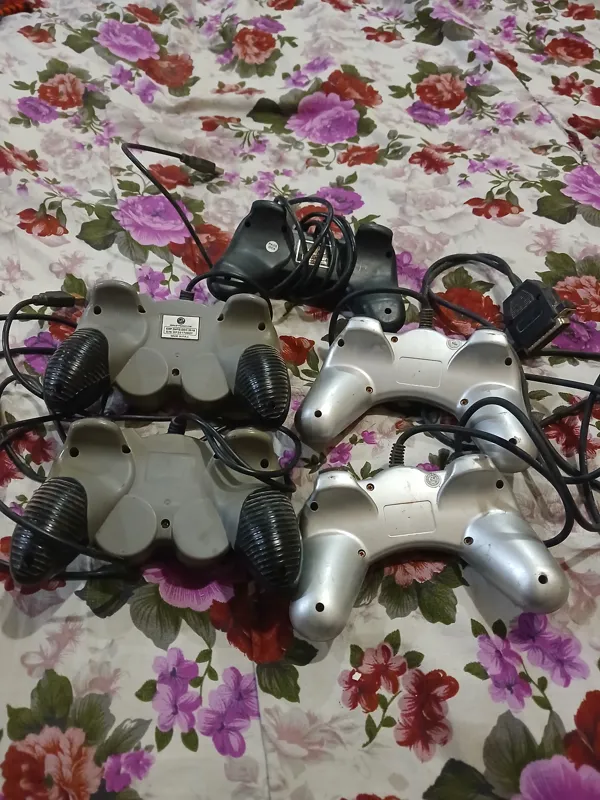 تعداد 5عدد دسته بازی که خودم سردر نمیارم نمی دانم مال چی است همگی روی هم به فروش میرسد خرابی وسالمیش را نمی دانم به خاطر اینکه حرفی نباشد بنده به عنوان معیوب میفروشم هر5 عدد راارسال میکنم عکسها خود کالا است قبل از خرید هر سوالی دارید پیام کنید لطفا در خرید دقت کنید تا مشکلی در معامله پیش نیاد واقیعت خودم نمی دانم مال چه دستگاه بازی است شکستگی هم هیچ کدامش ندارند گیرم آمده تست نکردم خریدش یک ریسک است .باز هم عرض میکنم اگه هم سالم باشد بنده به عنوان معیوب میفروشم تا ناراحتی پیش نیاد