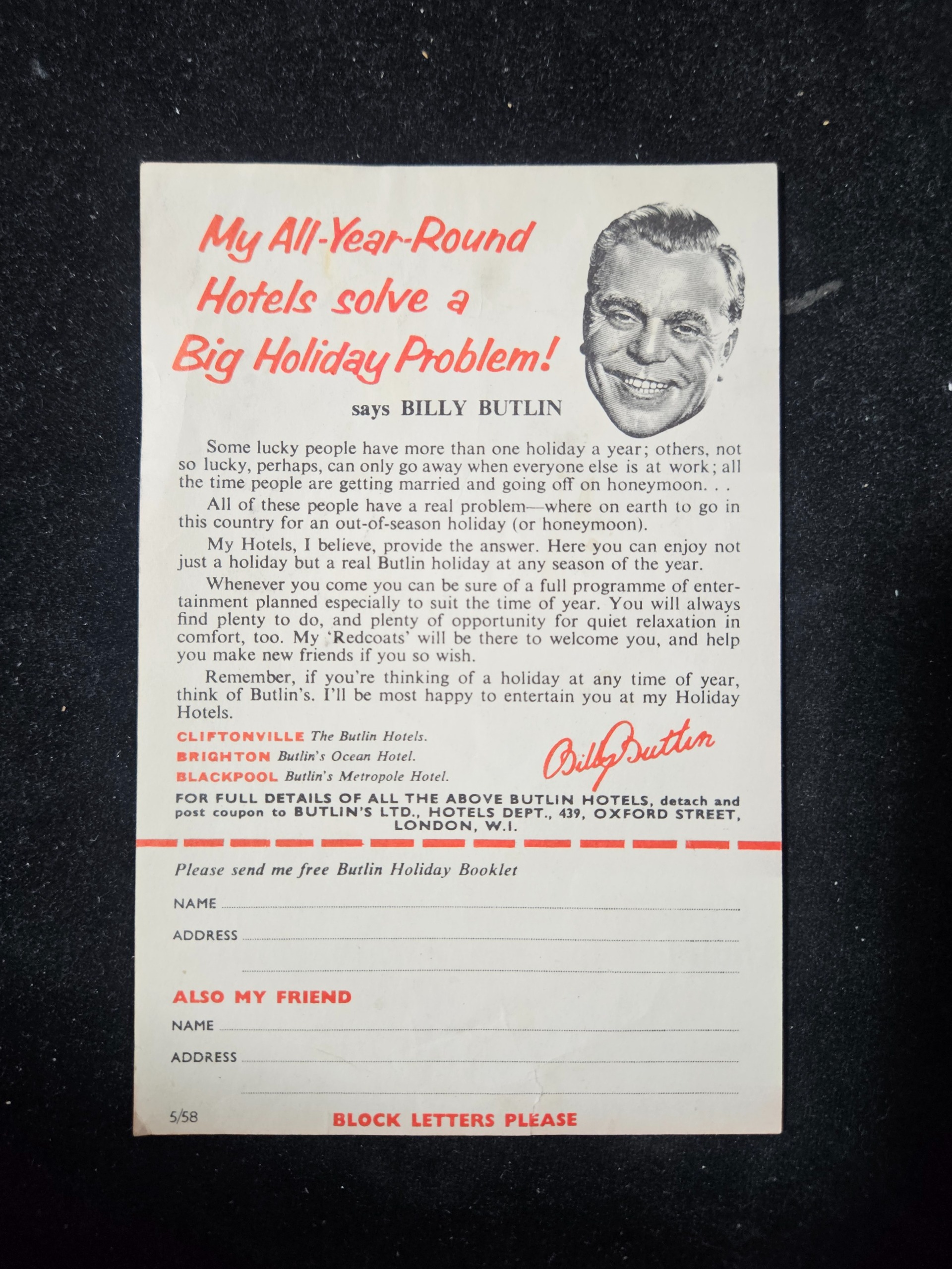 برگ تبلیغ هتل بوتلین انگلیس دهه 30