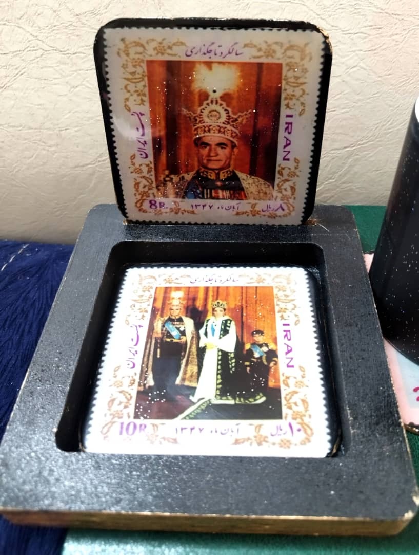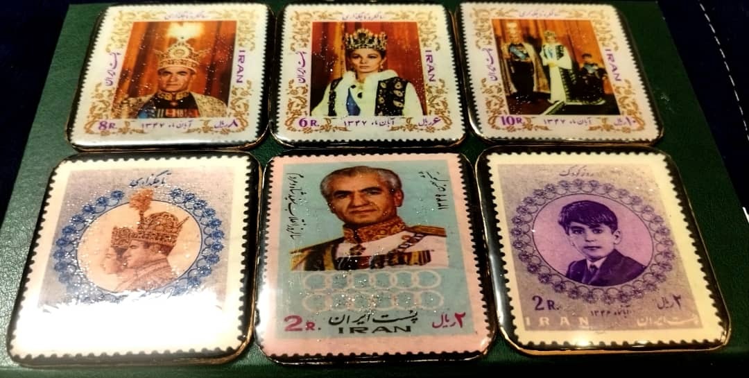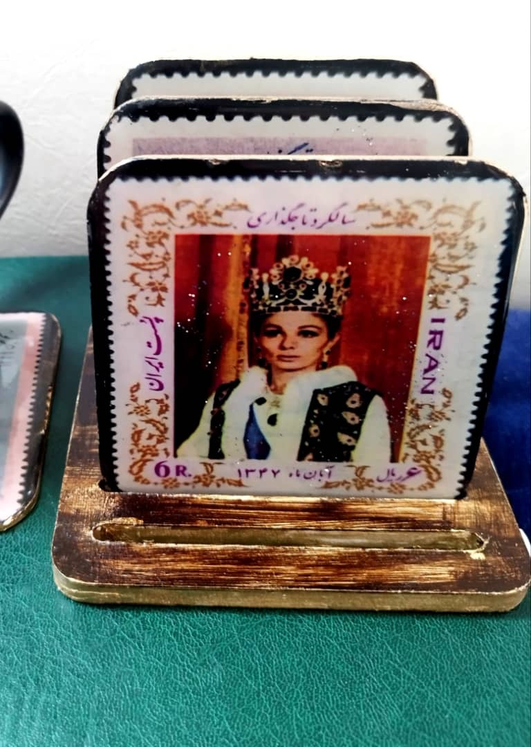 زیر لیوانی 8 تکه با طرح تمبرهای محمدرضا شاه