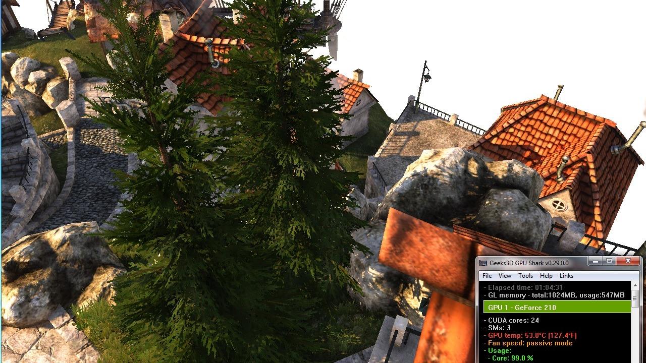 گرافیک با Unigine Heaven تحت استرس قرار گرفت به مدت یکساعت و 4 دقیقه مشکلی نداشت.(عکس چهارم) ماکزیمم دما 53 درجه.
