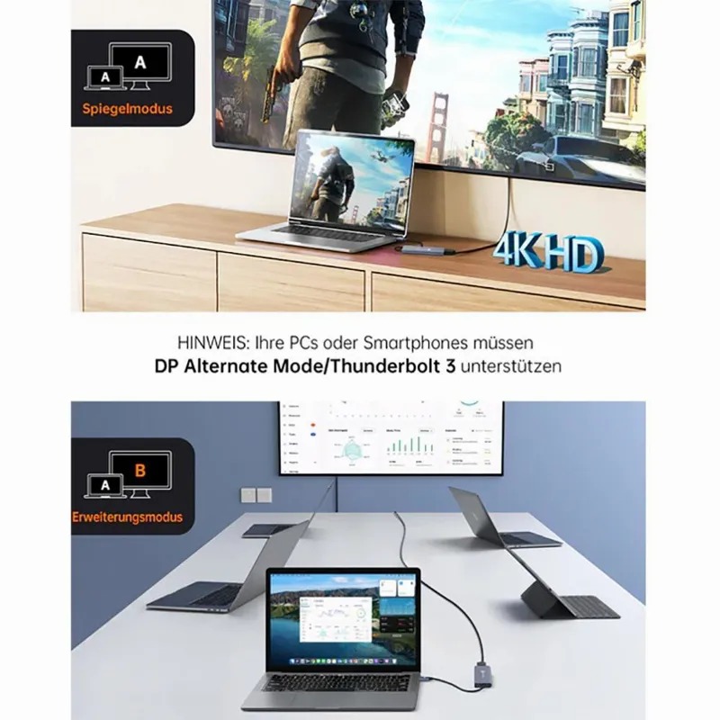 با آداپتور HDMI NOVOO USB-C Hub ، میتوانید خود را به یک تلویزیون HD ، مانیتور یا پروژکتور با رزولوشن تا 4K UHD (3840 x 2160 در 30 هرتز) بازتاب یا گسترش دهید . آداپتور 6 in 1 USB C Hub 4K HDMI USB C نیز از 1080P/23.98/24/50/59.94/60 هرتز، 1080i/50/59.94/60 هرتز، 720P/50/59.94/60 هرتز پشتیبانی می کند . با این آداپتور مک بوک USB C Hub ، میتوانید PPT خود را در جلسه کاری یا مدرسه خود پخش کنید و از فیلمها و بازیهای بعدی روی نمایشگرهای بزرگتر لذت ببرید .