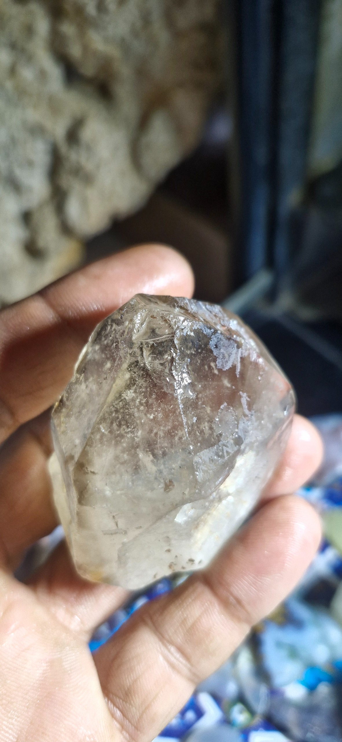 یک کلوخه حدودا 100گرمی کوارتز کریستال دودی ناب خاص تراش جواهری کاروینگ کارهای هنری مجسمه مدالی انگشتری دکوری سنگ درمانی