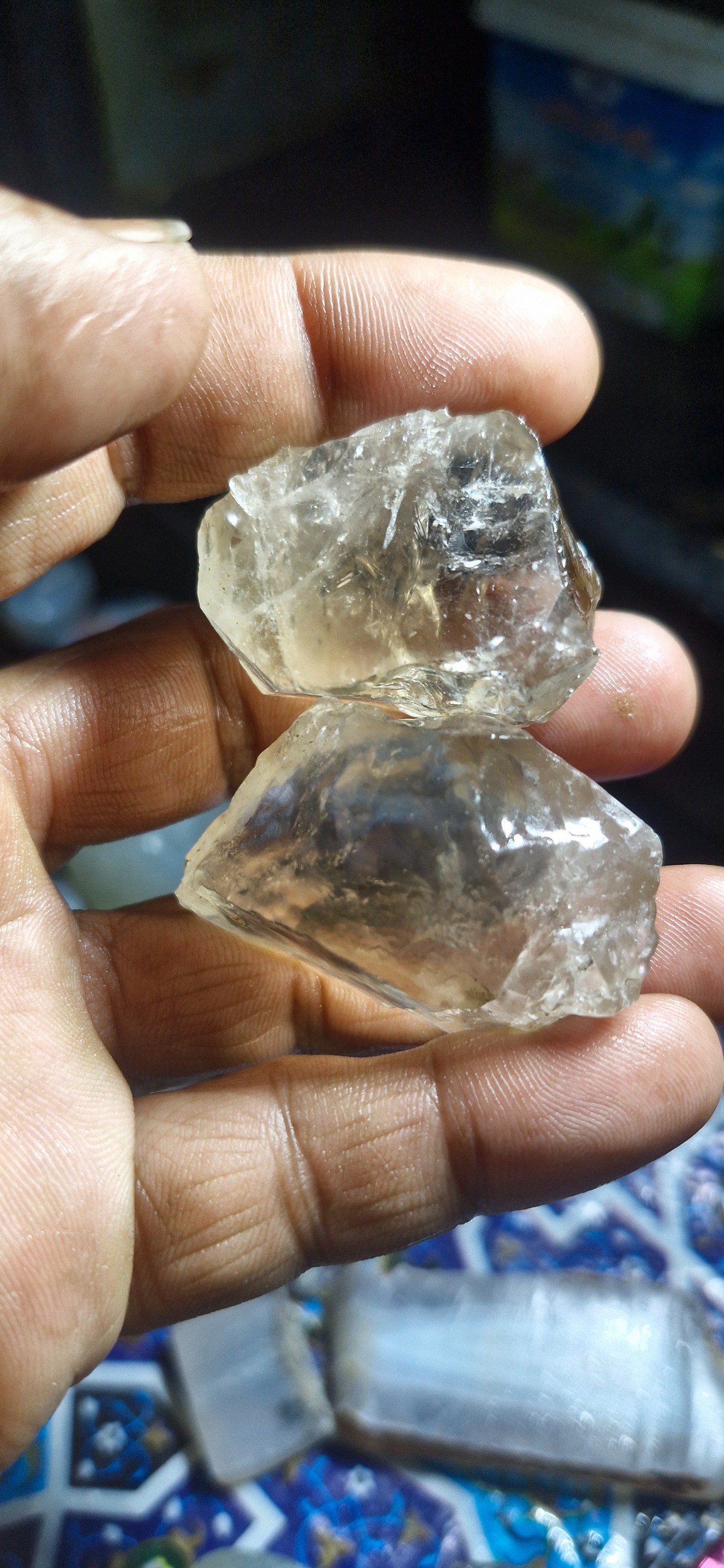 دو کلوخه کوارتز هرکیمر کریستال ناب شفاف سنگ درمانی تراش کارهای هنری بدون پرت ترک