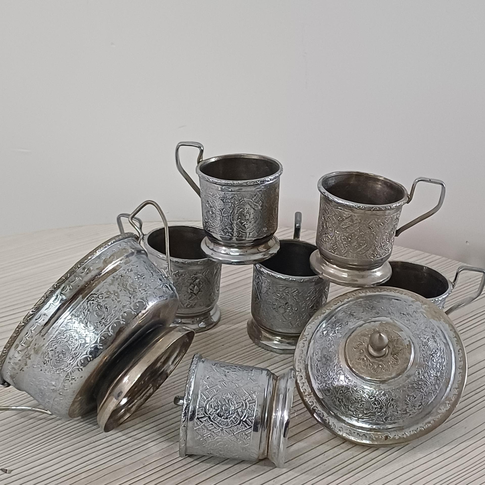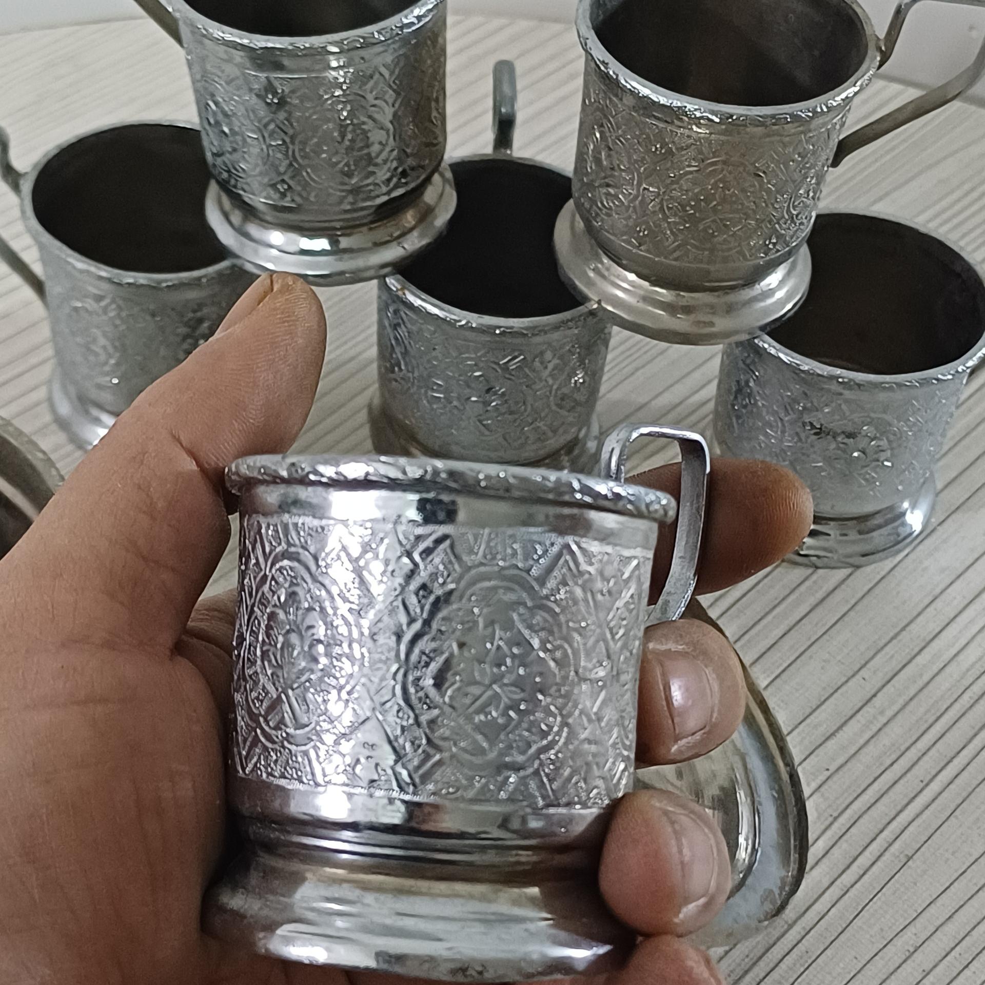 6عدد انگاره وقندان برنجی کهنه قلم سوزنی