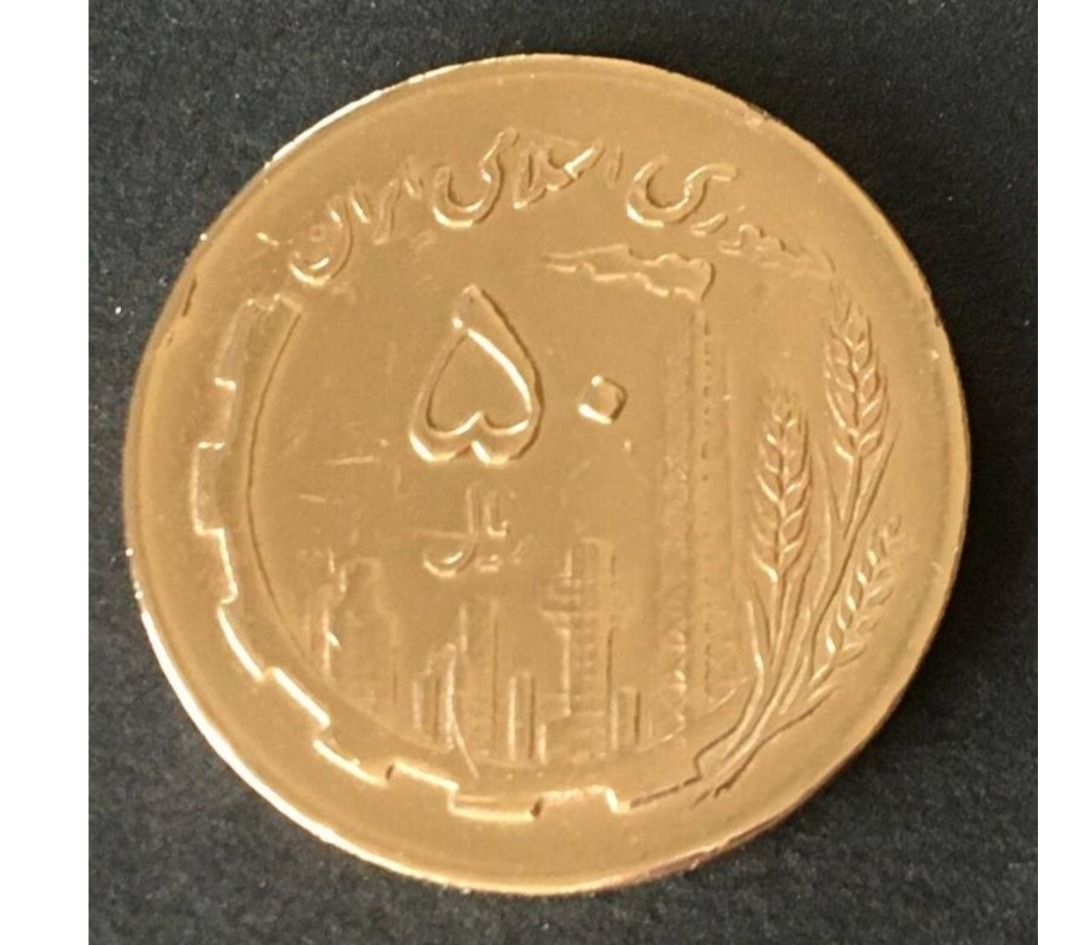 سکه 50 ریال مسی دور جمهوری تاریخ 1365