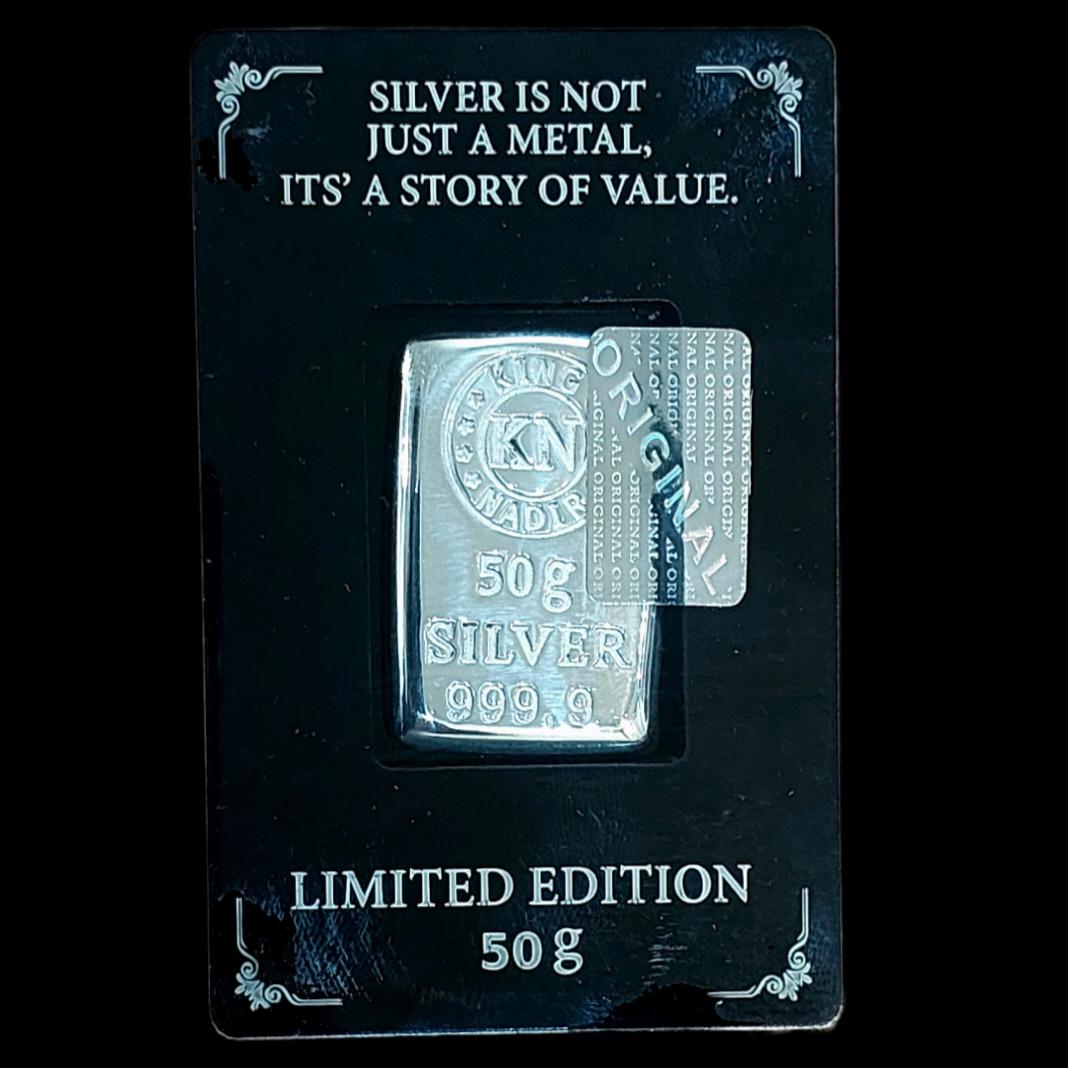 شمش نقره 50 گرم برند کینگ ندیر ترکیه با عیار 999.9