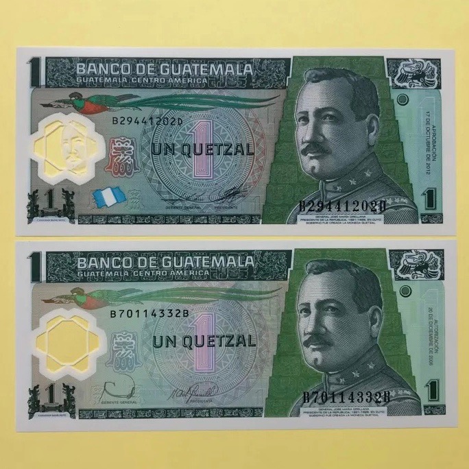 دو عدد اسکناس بانکی 1 کوتزال گواتمالا (2006و2012