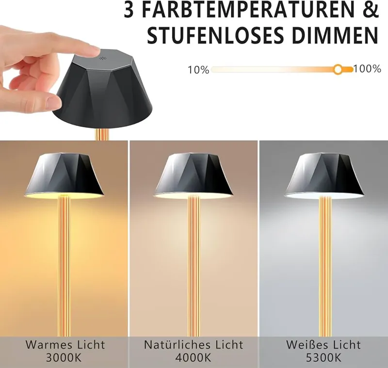 چراغ رومیزی LED قابل شارژ بیسیم، باتری 6000 میلیآمپر ساعتی با USB C، 3 حالت رنگ (3000K-5300K)، کنترل لمسی، ضد آب IPX4، چراغ لمسی برای رستوران، بار، اتاق خواب، مهمانی،