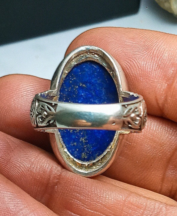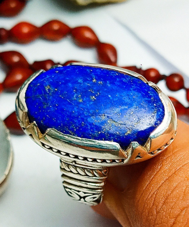 انگشتر لاجورد بدخشان اصل و طبیعی بدون  رنگ و بهسازی رکاب نقره شیک و خوشدست و نقره عیار 925