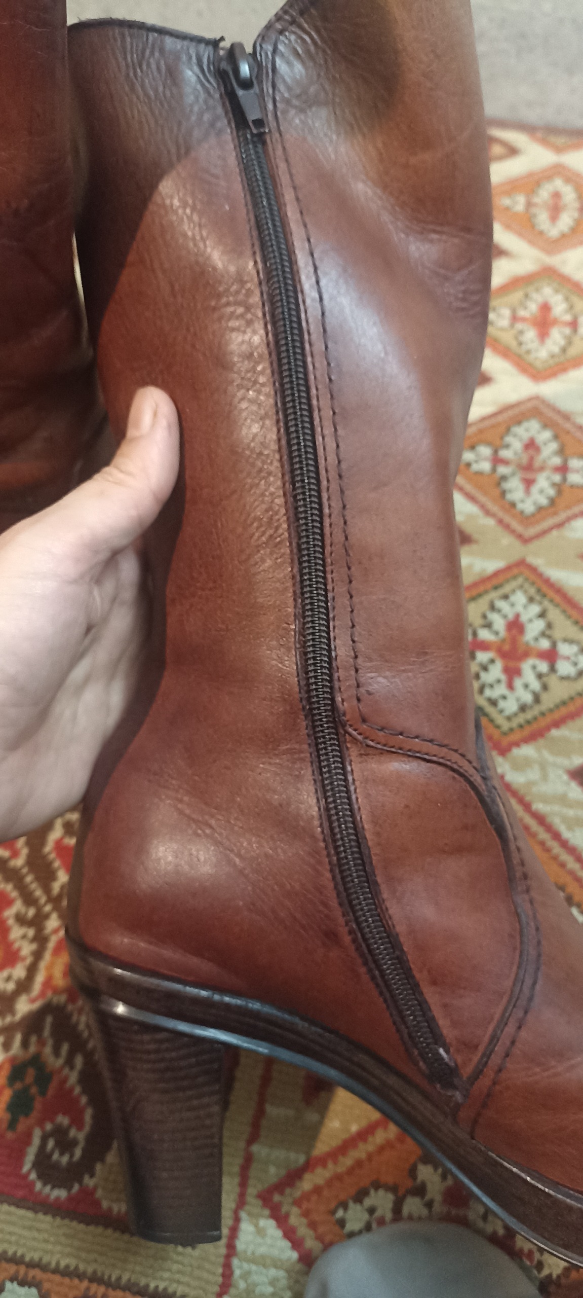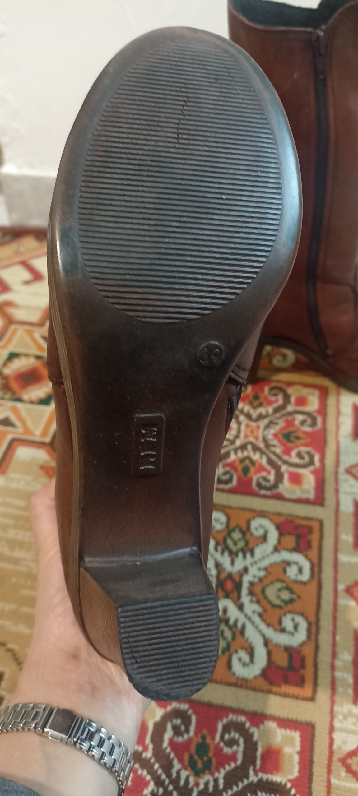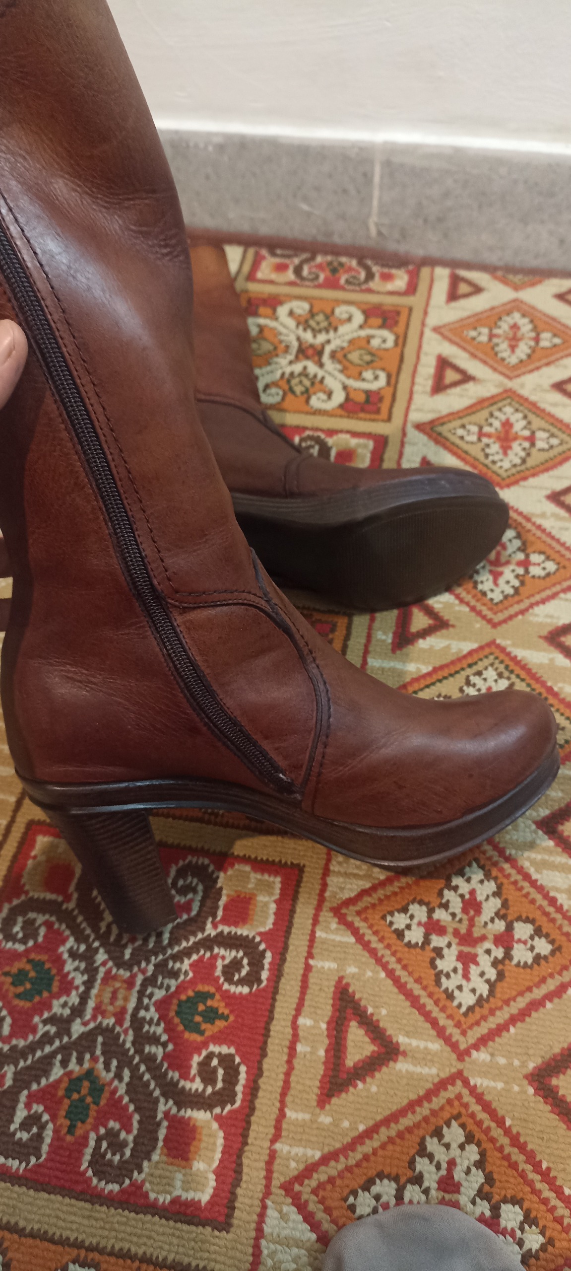 بوت ساق بلند. چرم گاوی پاشنه بلند یکسره. مناسب سایز 38 تا 39 بلند تا زیر زانو. کاملا راحت. مناسب برای ساقهای خیلی چاق نیست چون زیپ میخوره . مناسب سایزهای معمولیه قسمت ساقش. باز هم سوالی بود میتونی بپرسید.