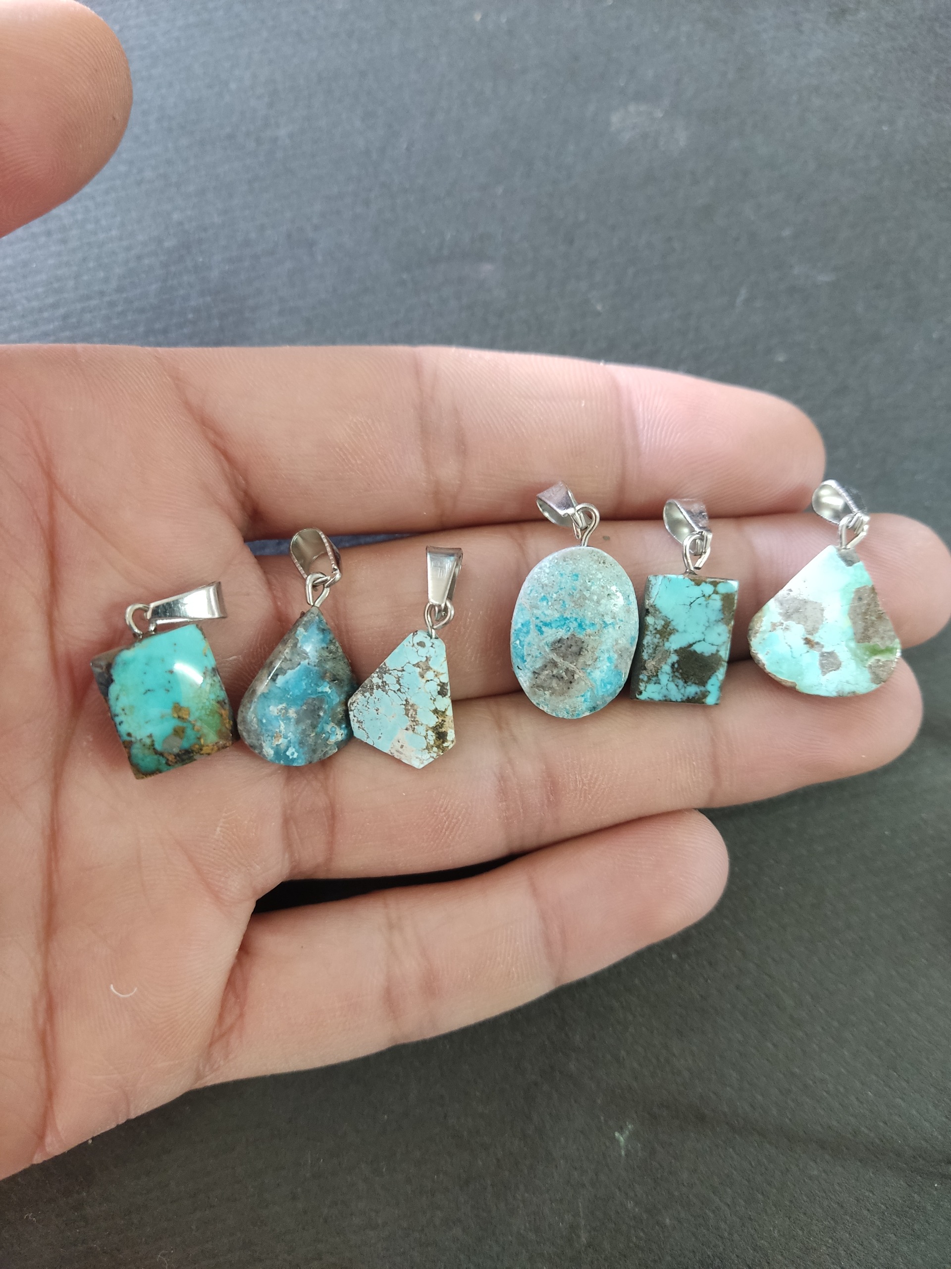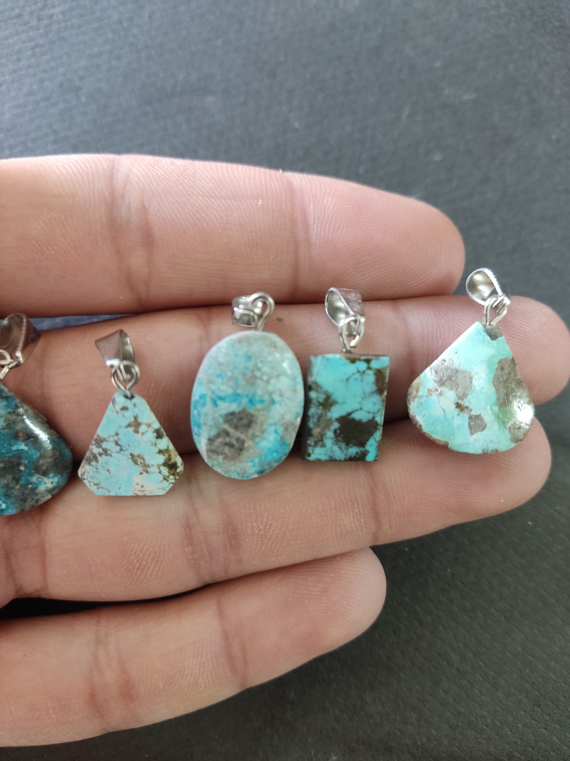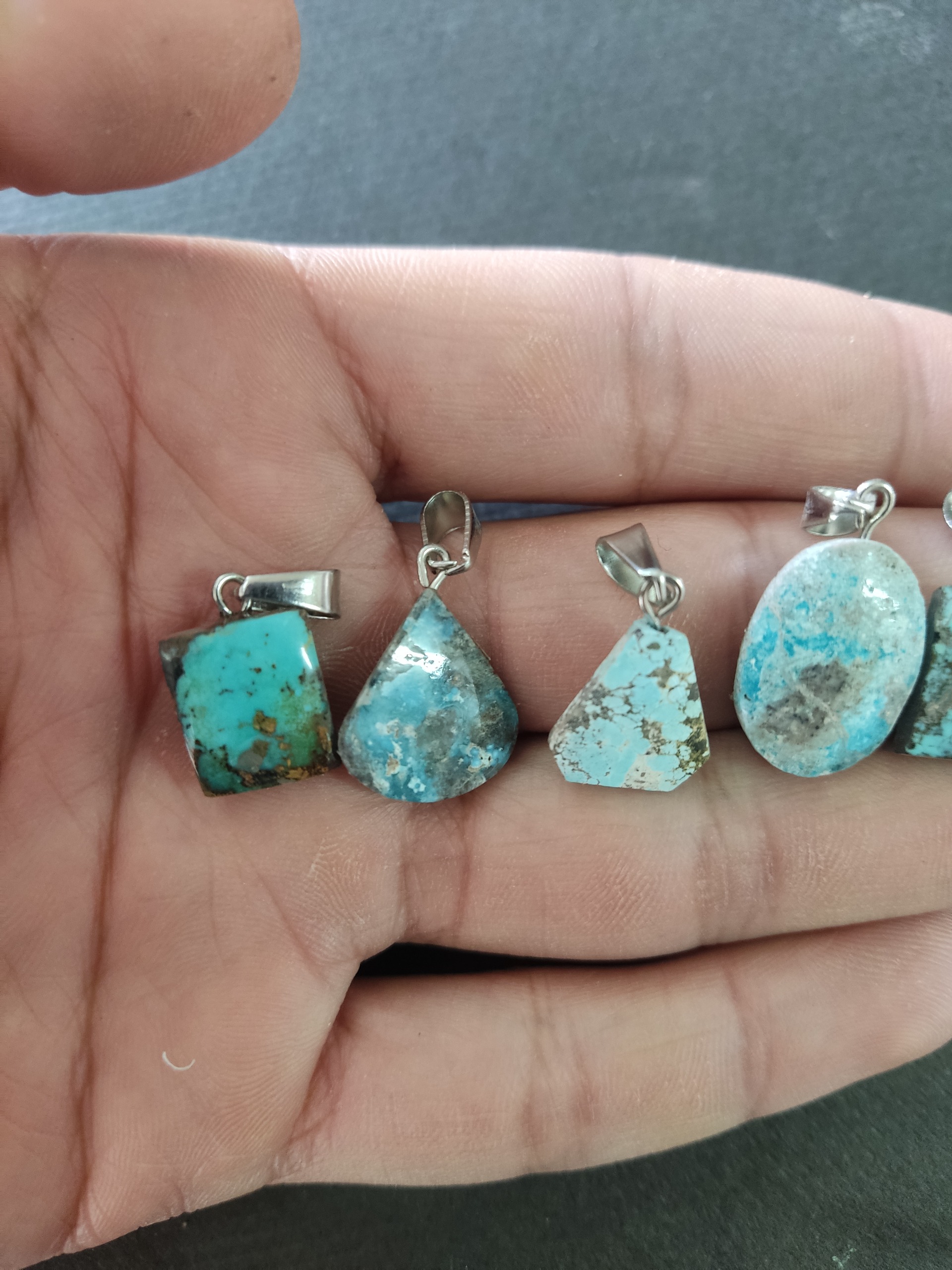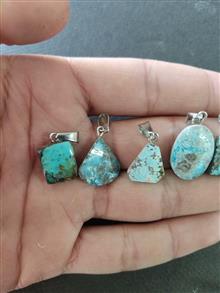 گردنبند های فیروزه نیشابور اصل تراش دست همراه با نخ چرمی ارسال میشود