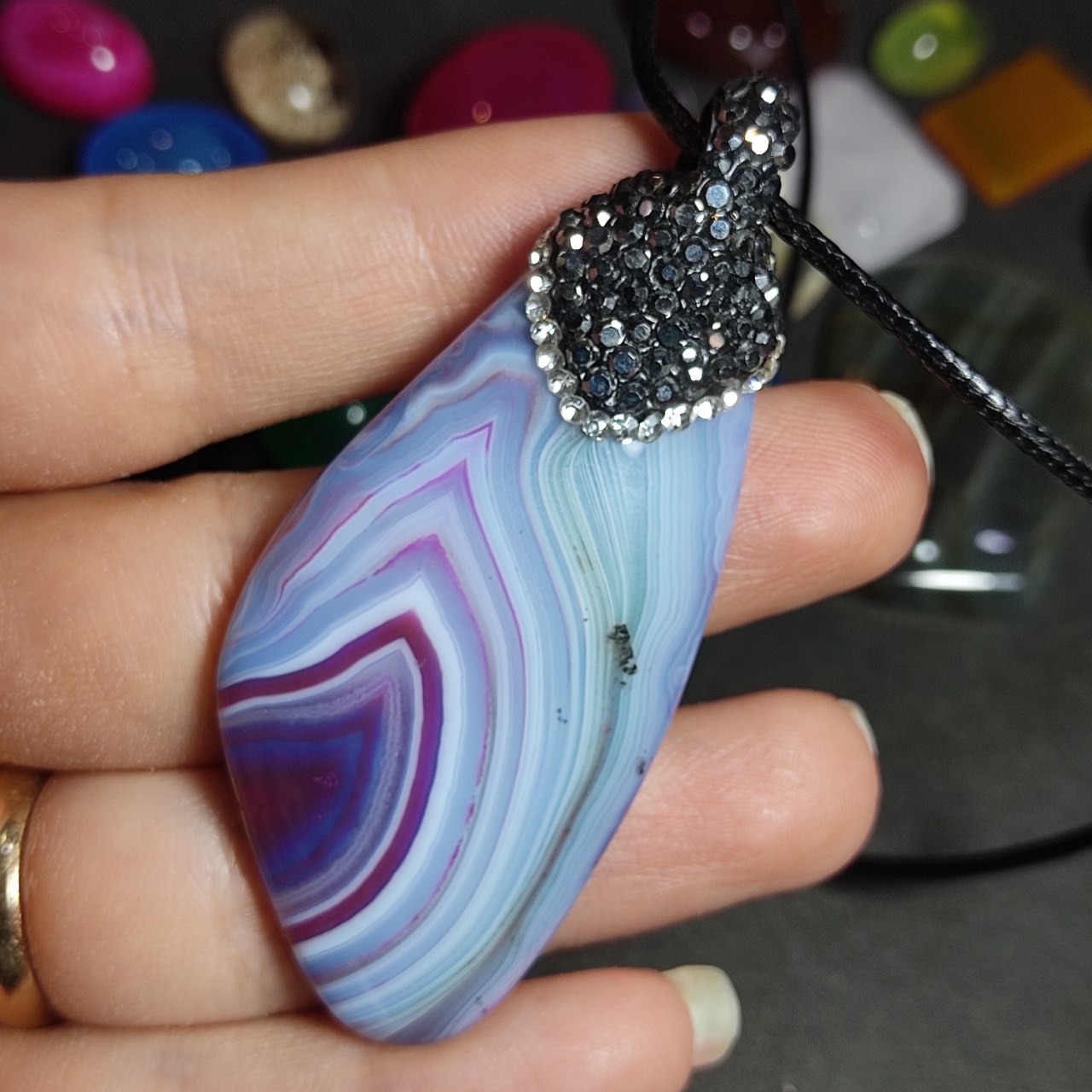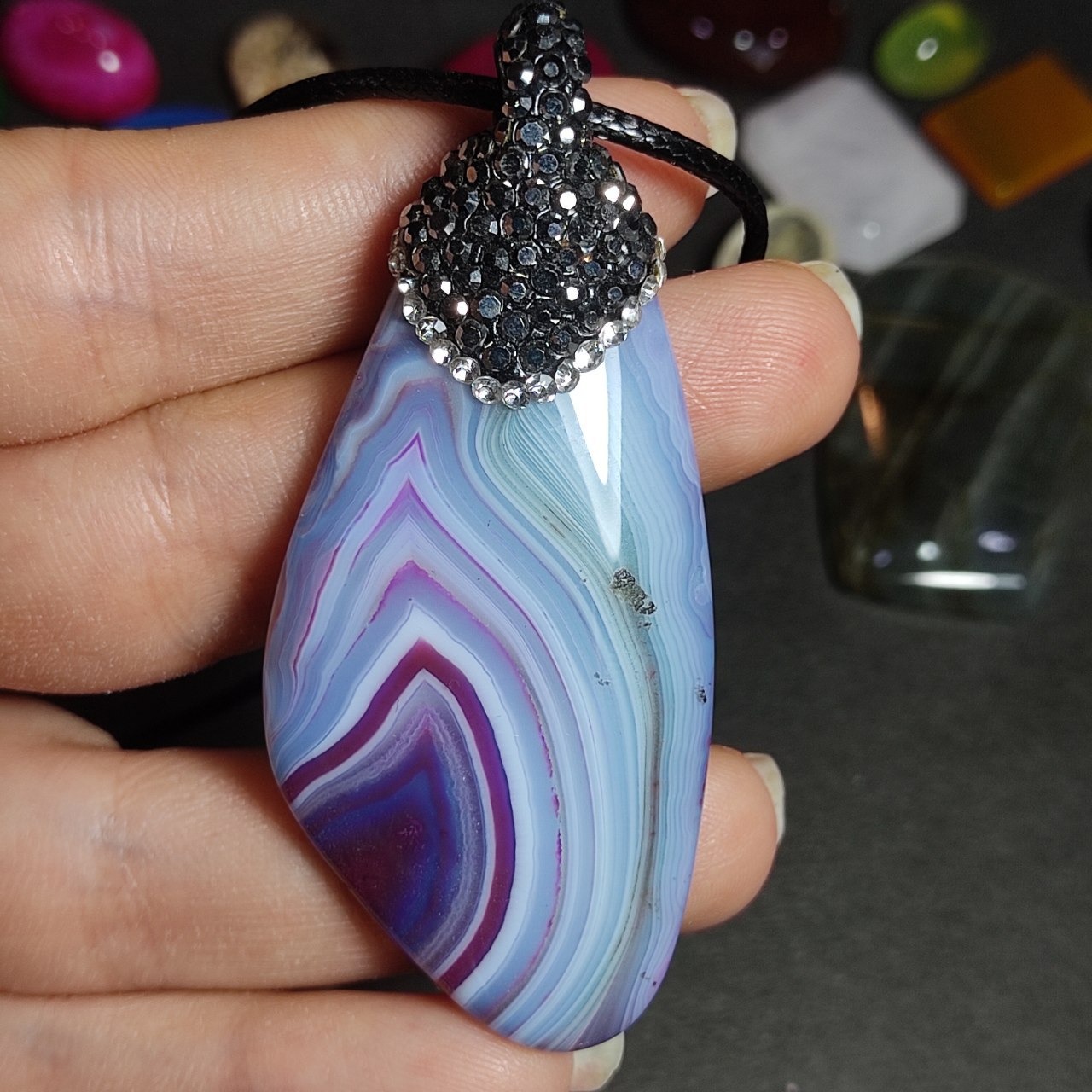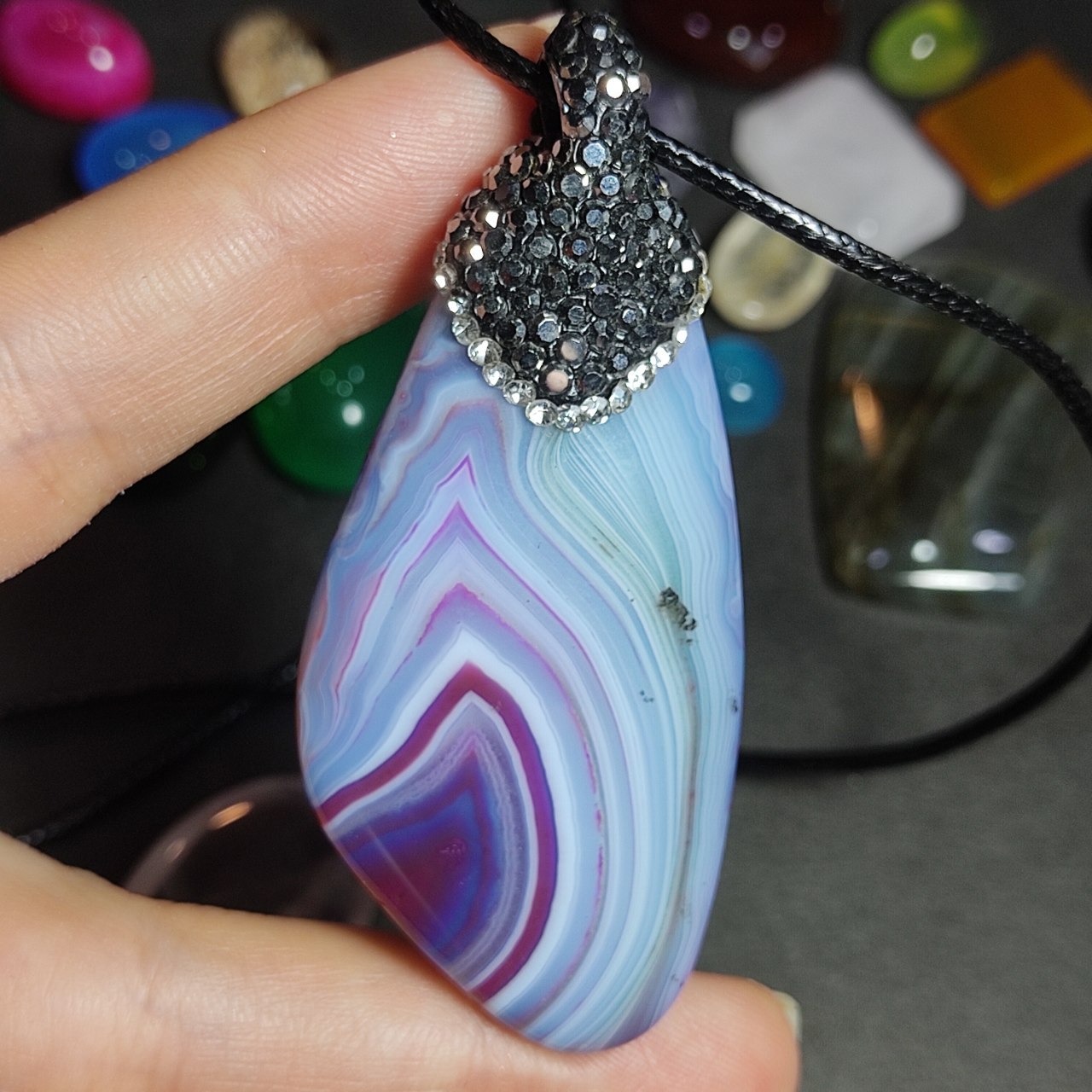 گردنبندمدالی سنگ عقیق سلیمانی معدنی کد10089