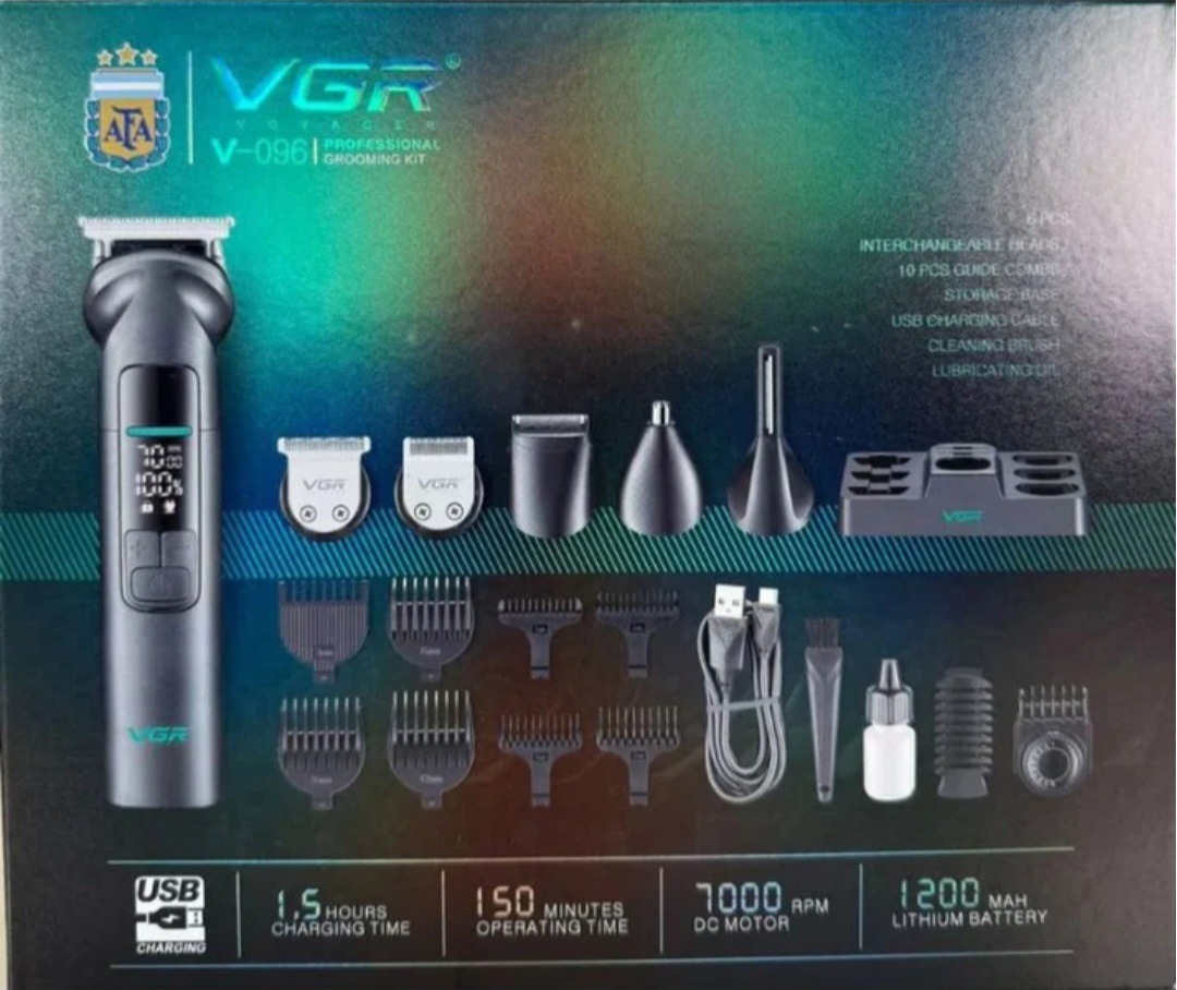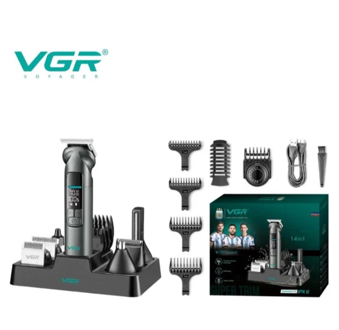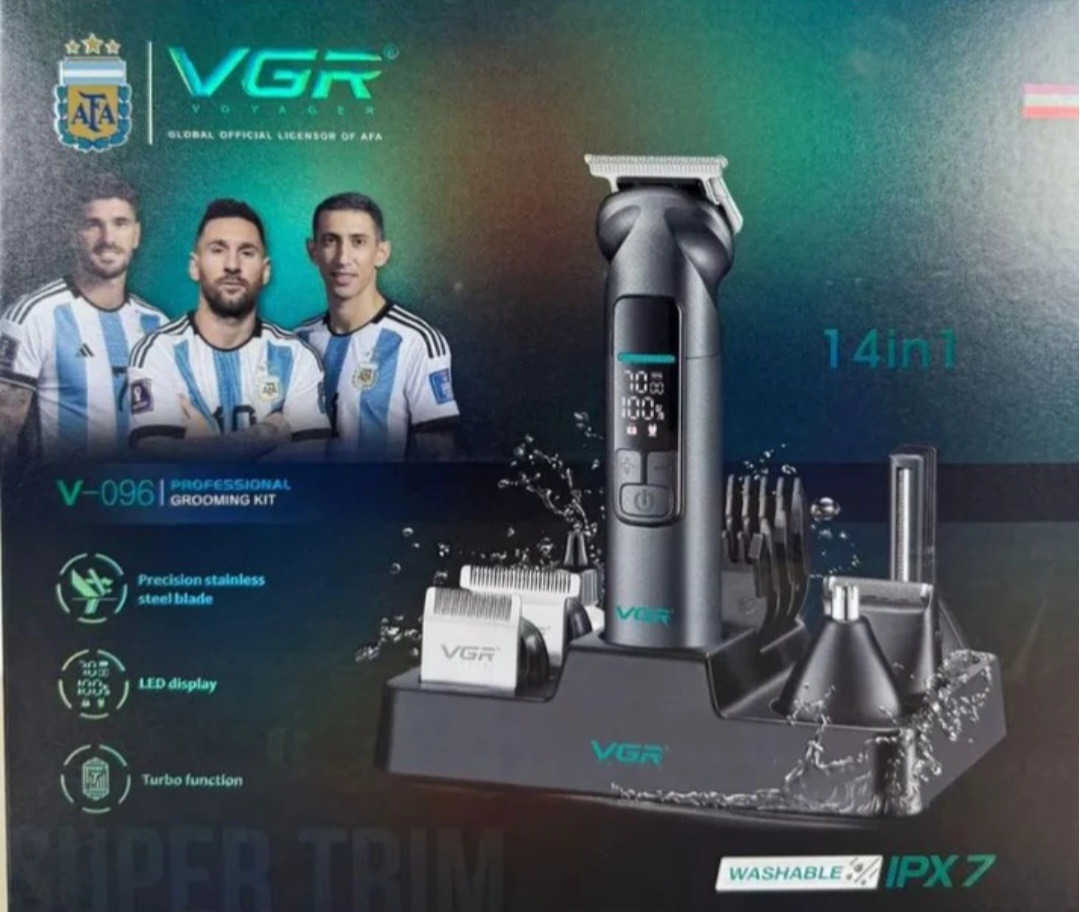 ست حرفهای ماشین اصلاح VGR مدل V-096 با 14 قابلیت + طراحی ضدآب و صفحه نمایش LED