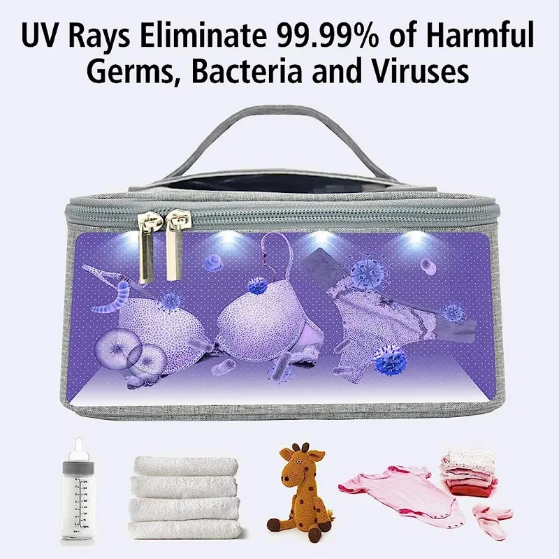 کیسه ضدعفونی کننده اشعه ماوراء بنفش، کیسه ضدعفونی کننده اشعه ماوراء بنفش قابل حمل، لامپ ضد عفونی کننده UVC برای تلفن همراه، لباس، عینک، میکروب ها و باکتری های ویروس ها را برای کار در منزل و مسافرت از بین می برد. UVBAG1.
