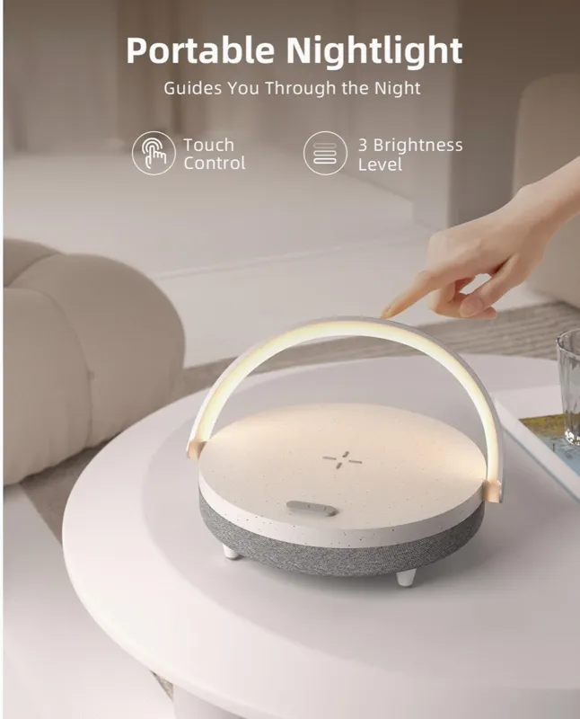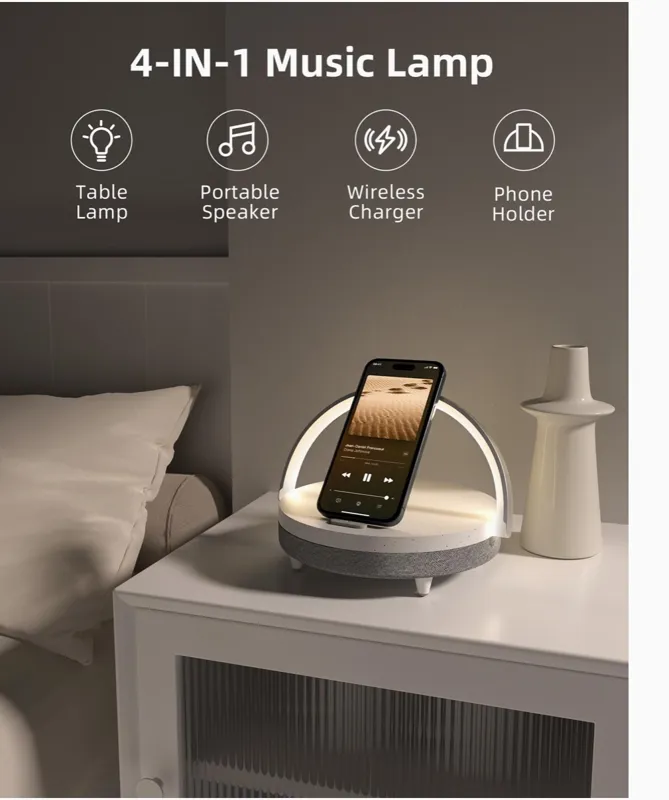 چراغ شب LED EZVALO، چراغ خواب موزیکال با شارژر، لامپ لمسی 4 در 1، بلندگوی بلوتوث قابل حمل، نگهدارنده تلفن، هدایای تولد برای زنان، مردان، بابا، مادر، چراغ شارژ بی سیم قابل تنظیم