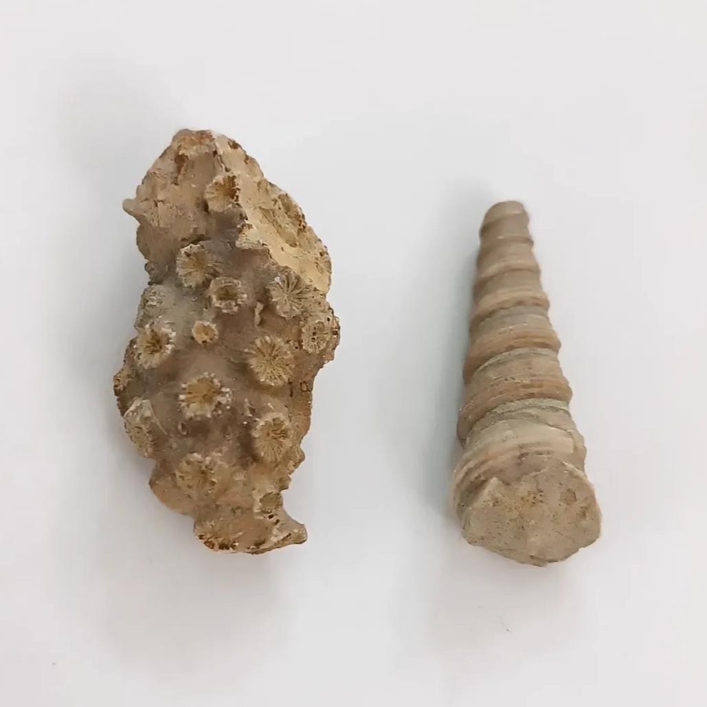 دو عدد فسیل عرج گاستروپود و مرجان برجسته و کمیاب